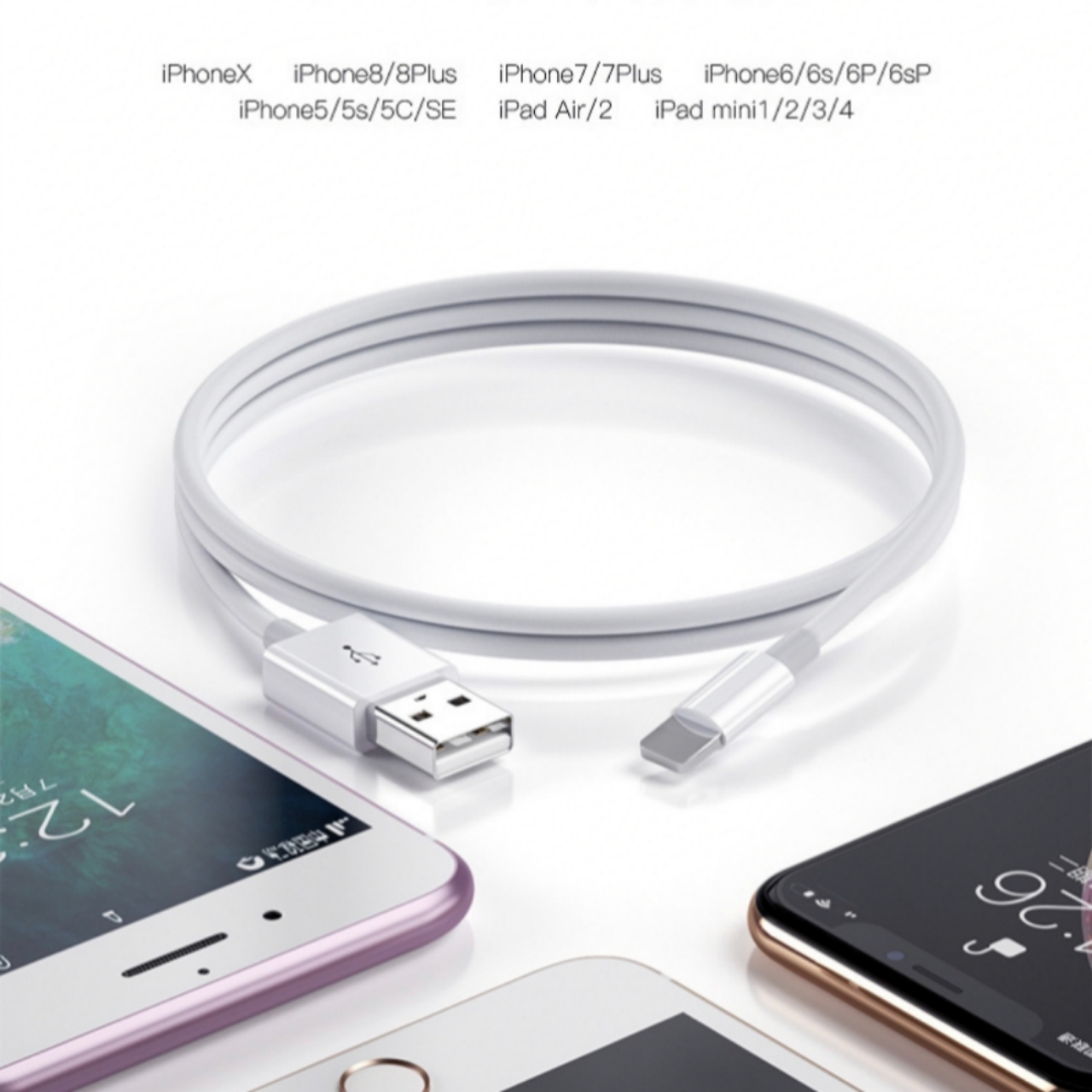 Lightning charging Cable compatible For iPhone X XS Max XR Wire Data and Sync USB Charger for iPhone 12 11 7 8 6 6s Plus USB Charging Cord 0.25m 1m 2m white colour