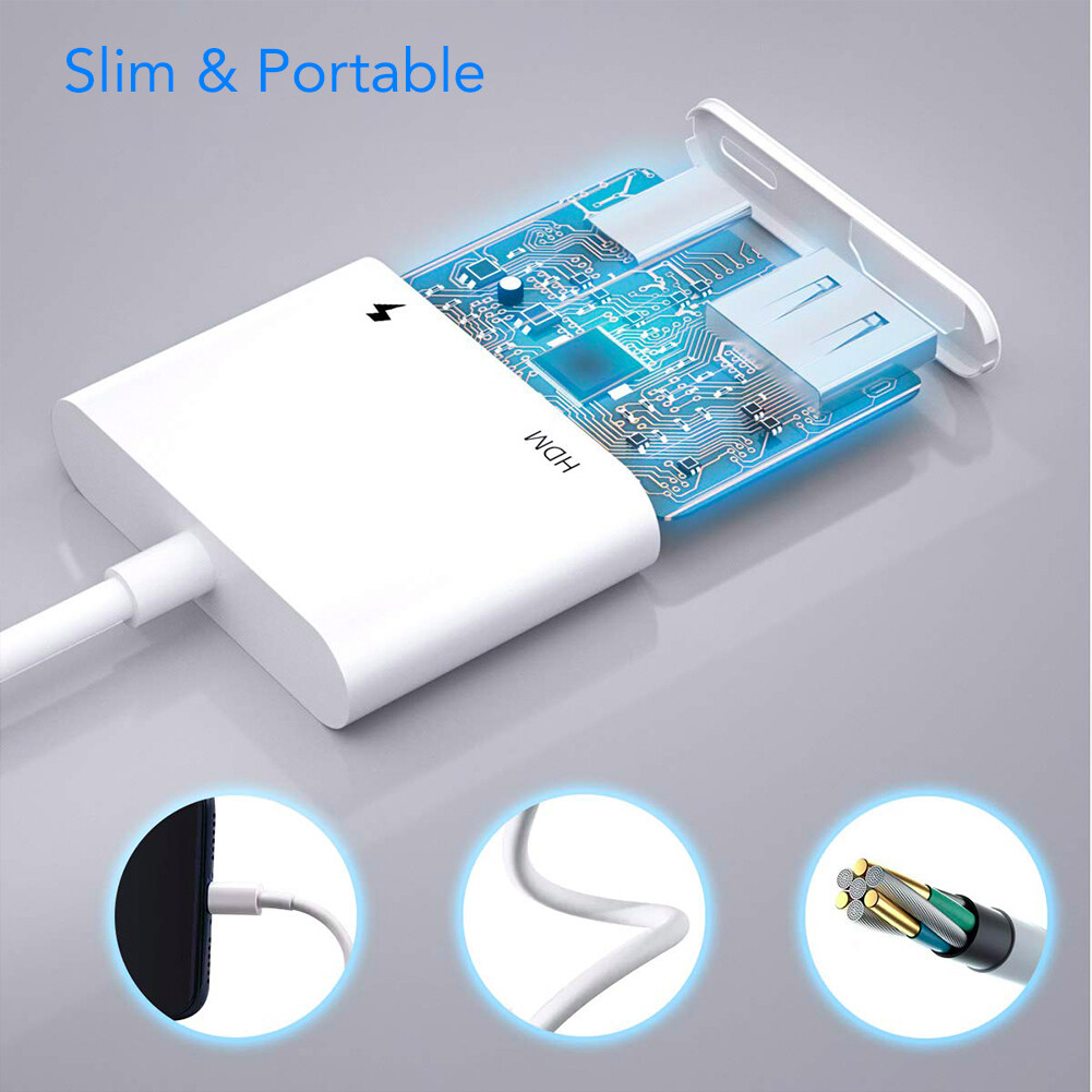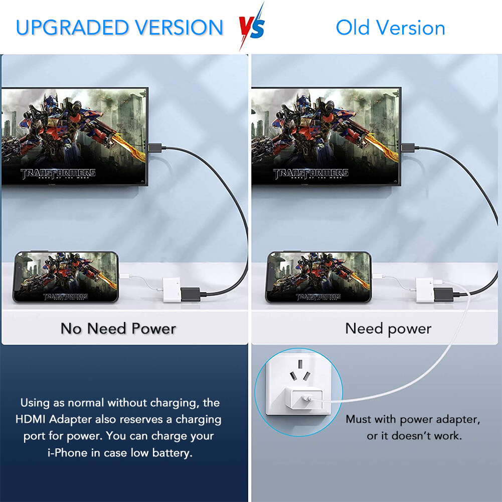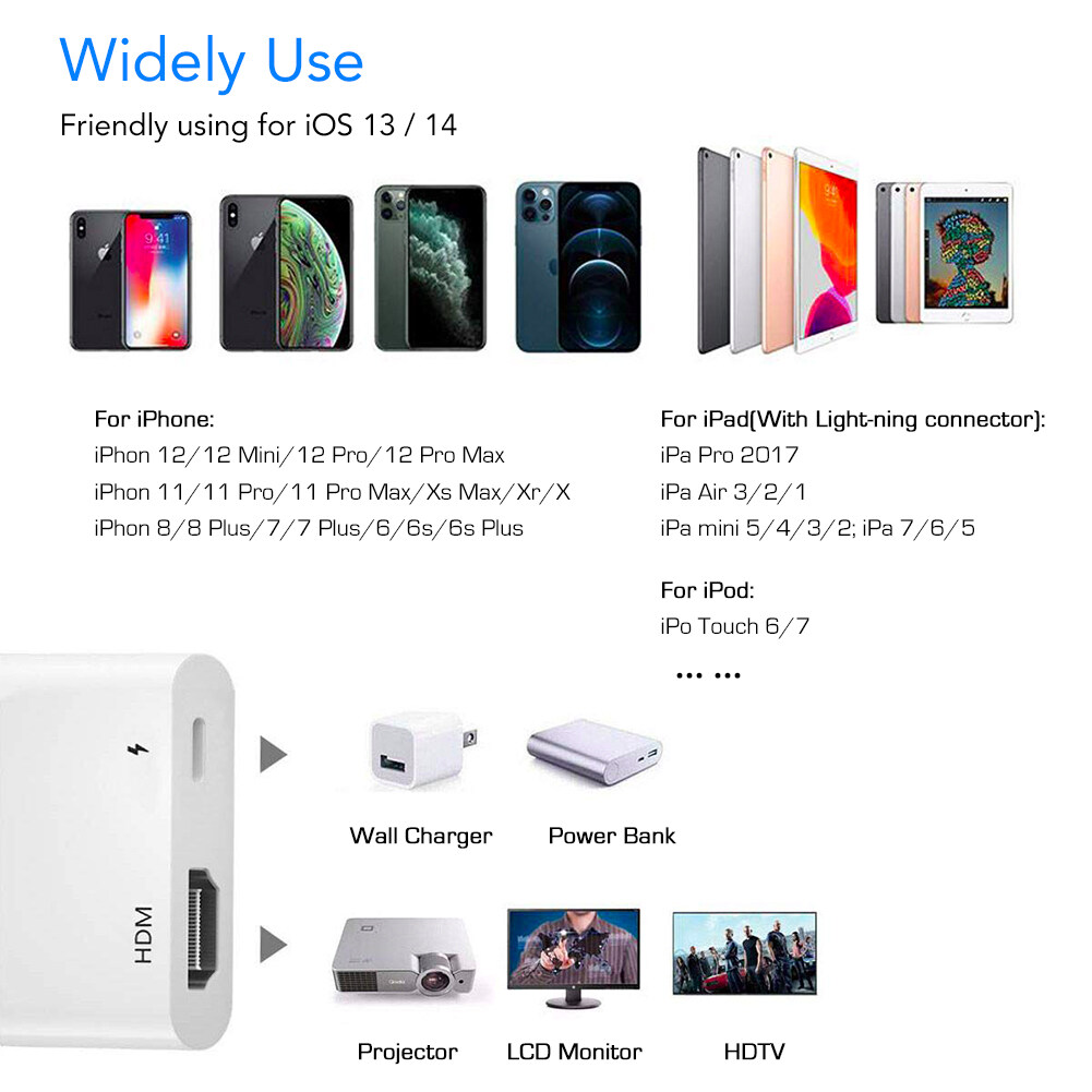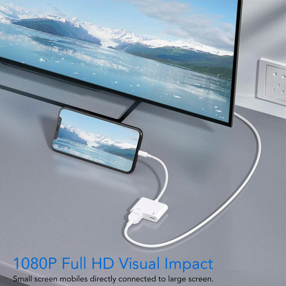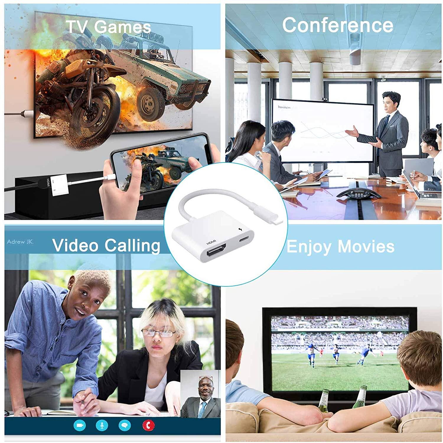 【TESTED-No Need Power】For Lightning HDMI 1080P Audio Digital AV Adapter Full HD Video HDTV Converter for iPhone 12 Mini Pro Max 11 Xs XR X 8 7 6/Pad/Pod Support TV/Projector/Monitor