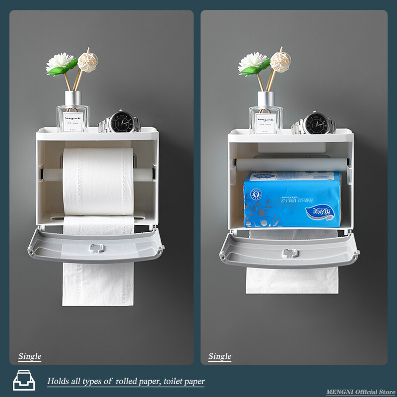 MENGNI High Quality Toilet Paper Holder no drill Waterproof Toilet Tissue Storage Box Wall Mount tissue box Bathroom Accessories Sets