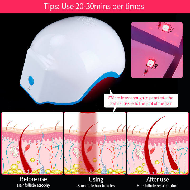 4.With 80 diodes,deliver the maximum amount of light and coverage for total scalp area in the average human head. Consisting 20-30 minute sessions using the helmet can improve the appearance of hair quality, hair strength and hair thickness.