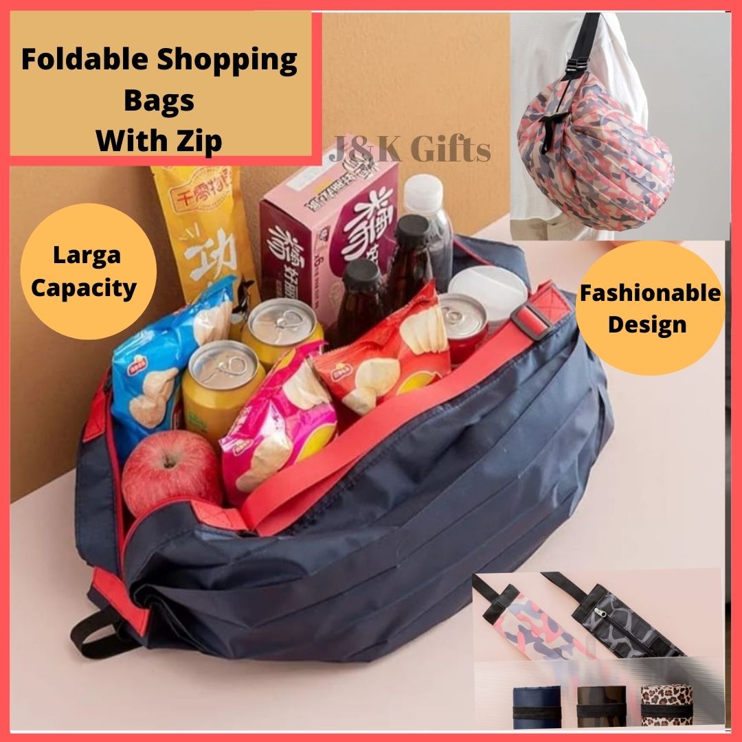 Foldable Shopping Bag With Zip40x40cmLarge Foldable Tote Waterproof Travel Bag Eco-Friendly Recyclable Reusable Washable Grocery Bag Supermarket Unisex Carry Bag Outdoor Heavy Duty Durable Widely Tote