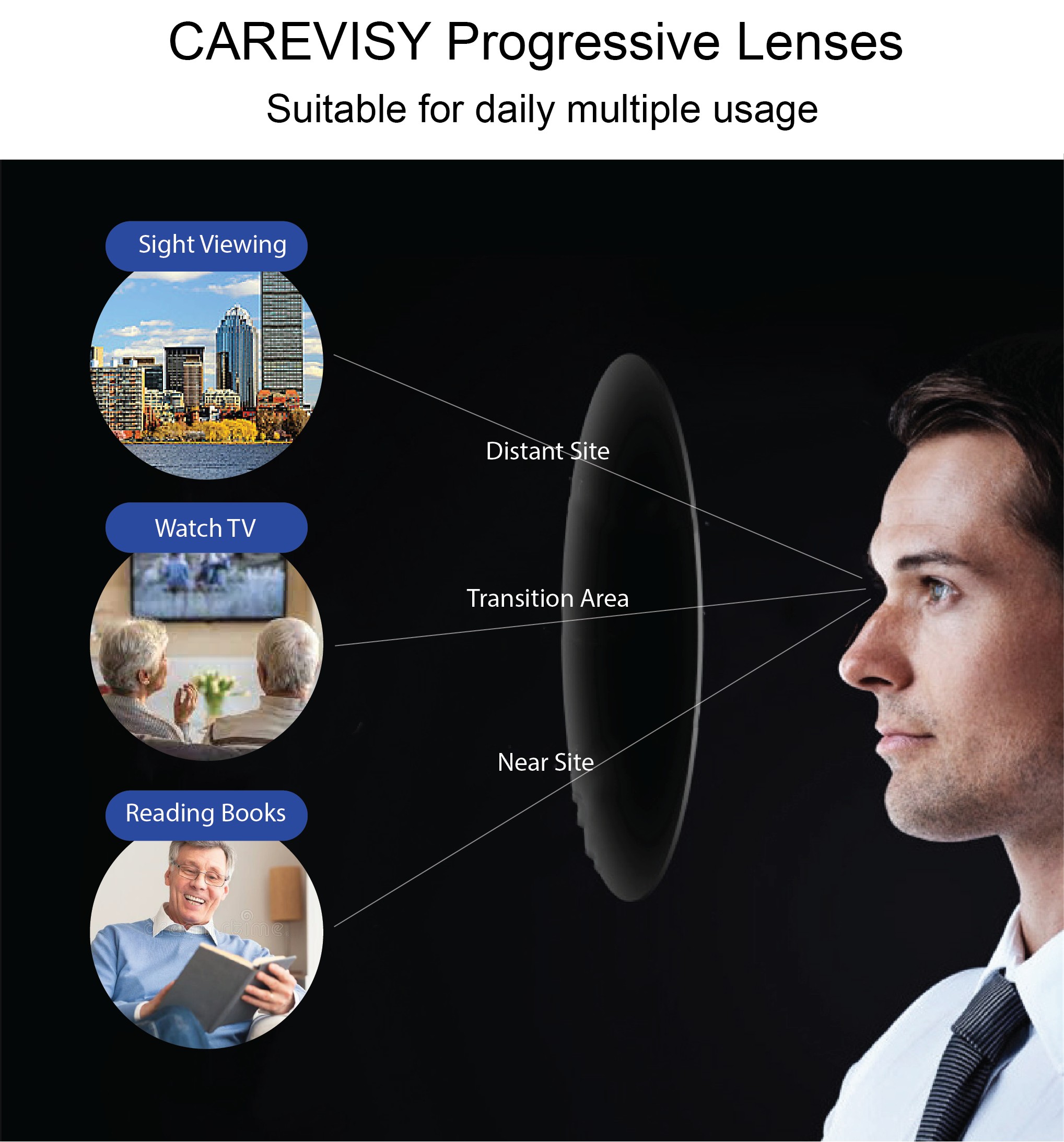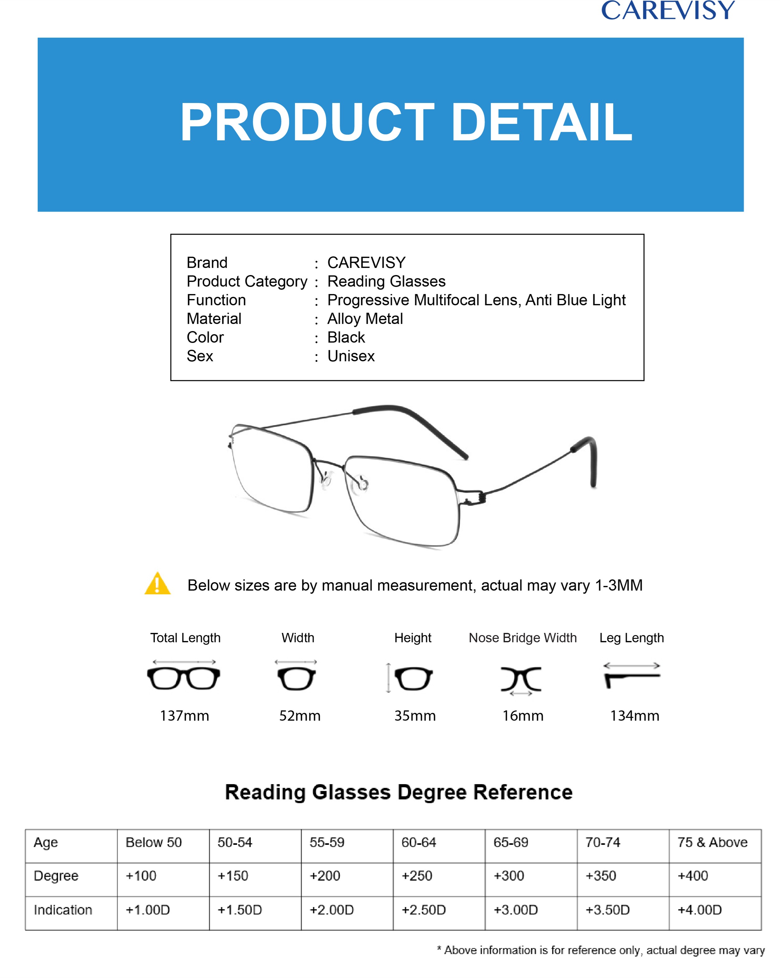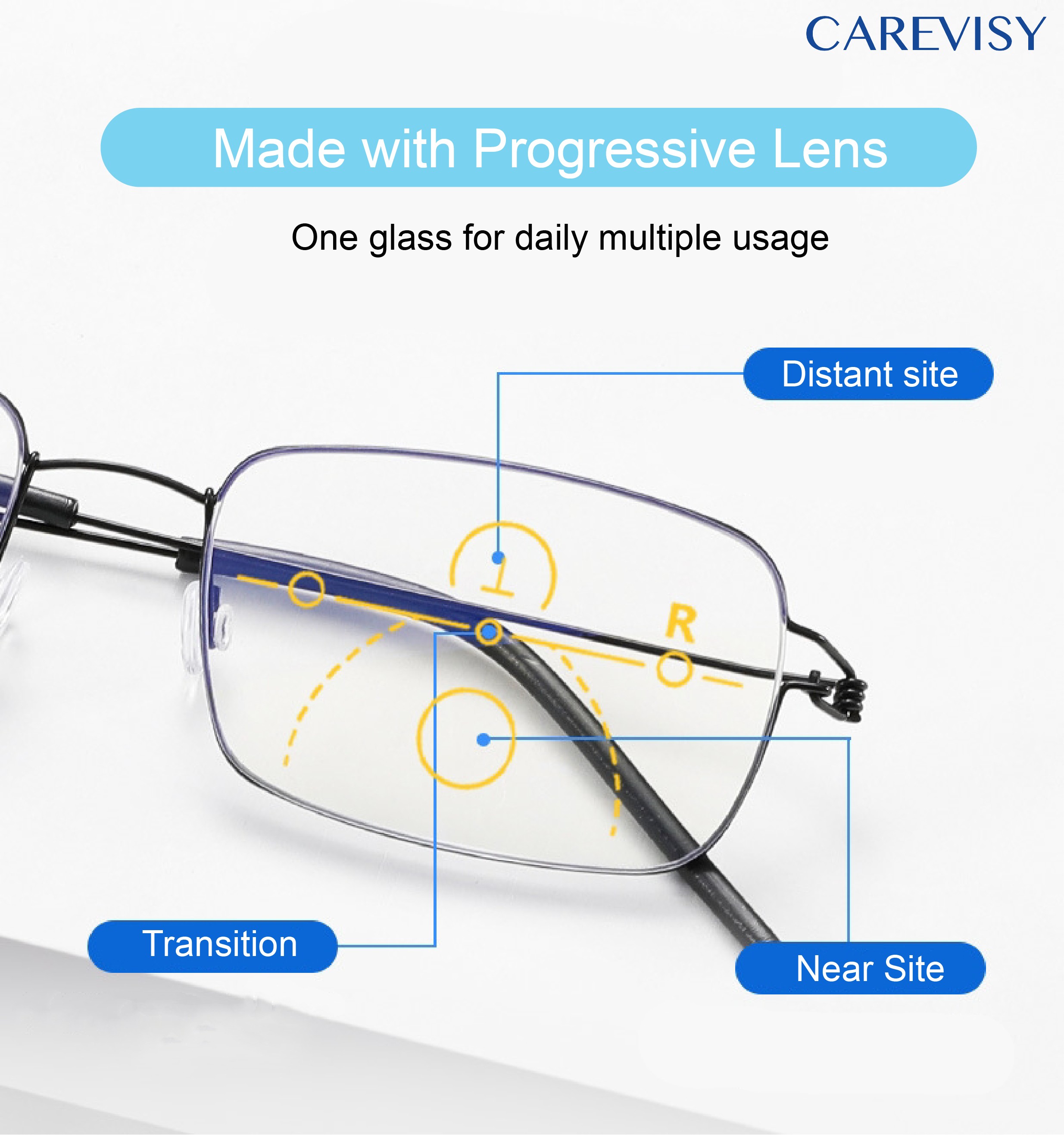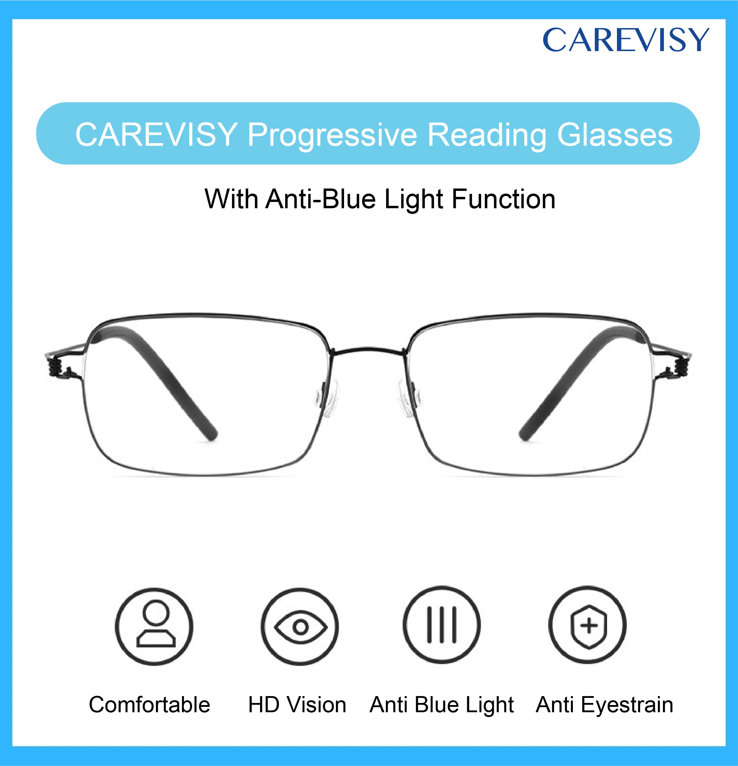 (Gift for parents) CAREVISY Premium Multifocal Progressive Reading Glasses Presbyopic Presbyopia Glasses Far Sighted Glasses Anti Blue Light Ray Spectacles for Adults Men Women C6043