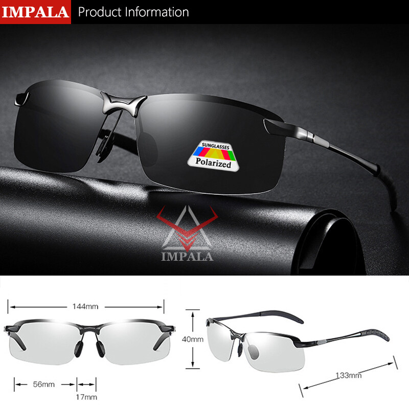 IMPALA PG036W Fashion Men Polarized Sunglasses Metal Frame Photochromic Lens Anti Glare UV Protective Eyeglasses Original Style Korean Sun Glasses UV400 HD Lens Change Color Itself