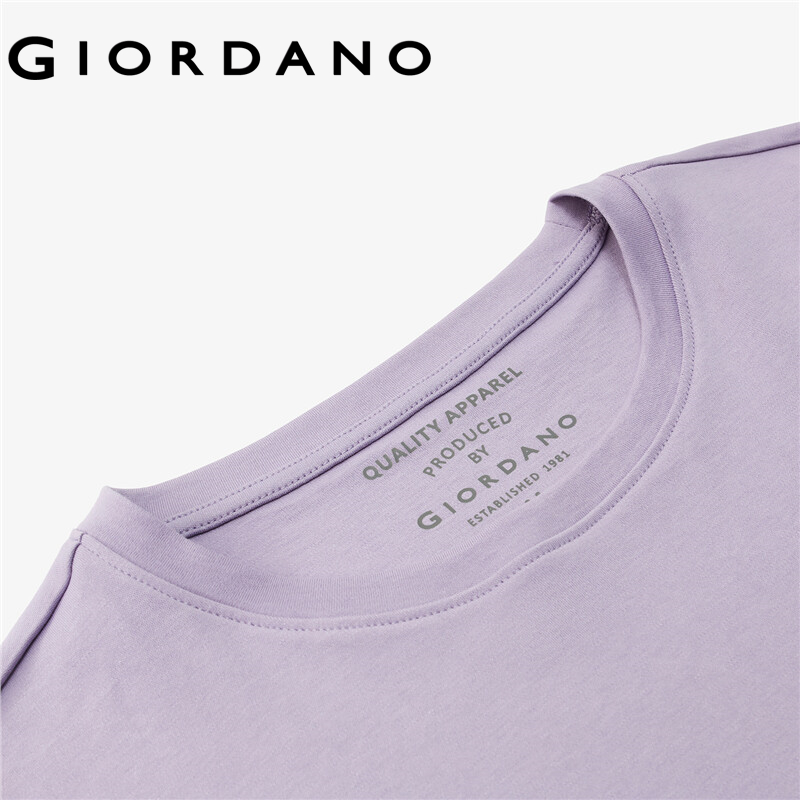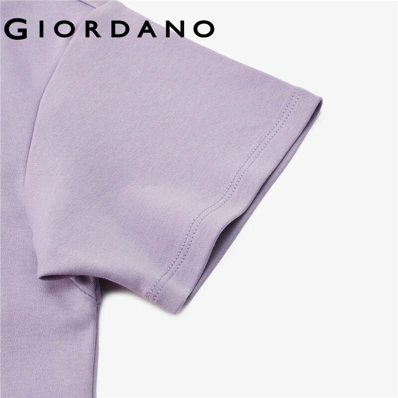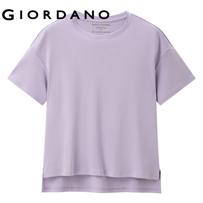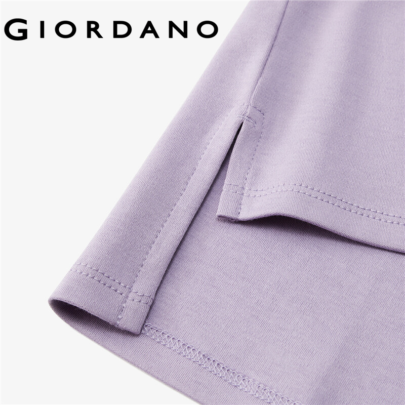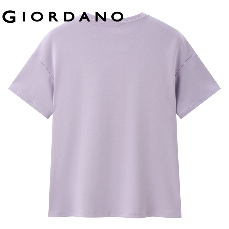 Giordano Women T-Shirts Loose Design Dropped-Shoulder Crewneck T-Shirts Patch Pocket Simple Solid Color Casual T-Shirts 05321202