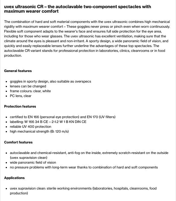 uvex safety ultrasonic CR goggles (part no: 9302500)