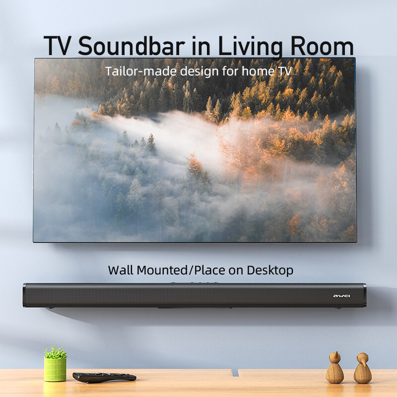 Awei Y999 Wireless Bluetooth Soundbar Speaker Portable home theater TV Wired Speaker Surround SoundBar Stereo HiFi Bluetooth 5.0 Elegant metal shell Speakers with 6D HD Sound Waterproof Bluetooth Spea