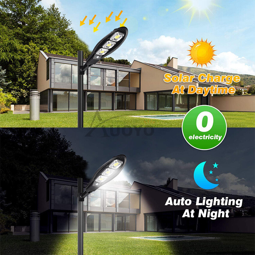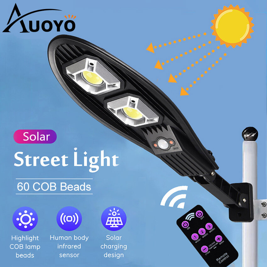 Auoyo LED Solar Light Outdoor Waterproof Solar Motion Sensor Wall Light Street Lamp IP65 Waterproof Adjustable 3 Modes Garden Decoration Street Lamp with Remote Control
