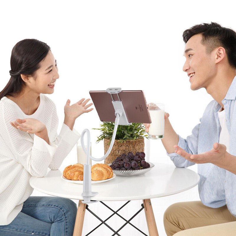 Awei X3 White Lazy Phone Holder 360 Rotating Fexible Universal Available Desk bed Holder Long Arm Lazy Phone Holder Adjustable Desktop Bed Tablet Clip For Mobile Phone Pad and Tablet PC
