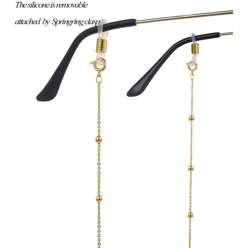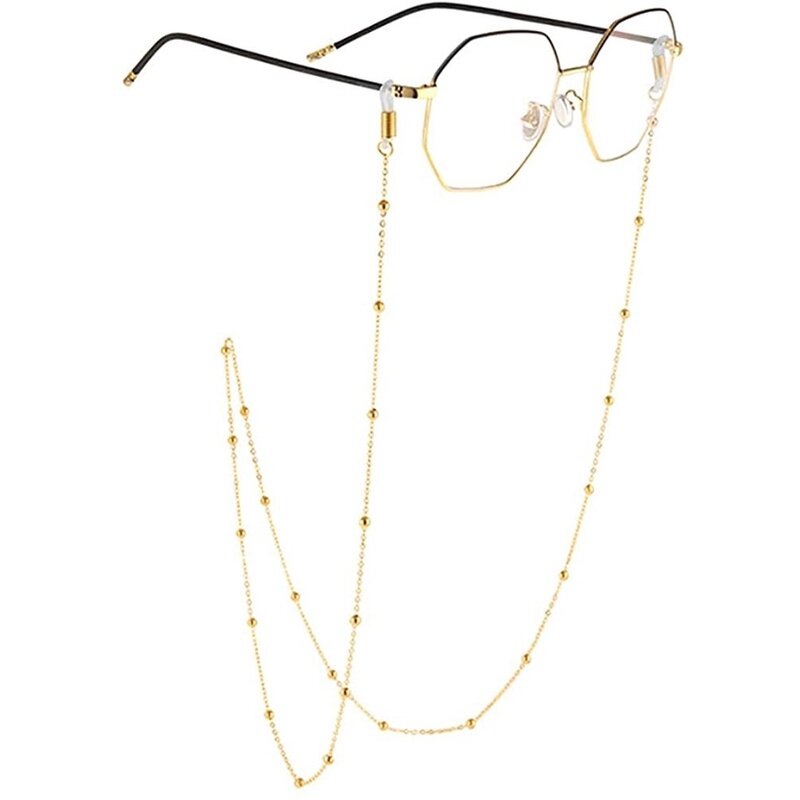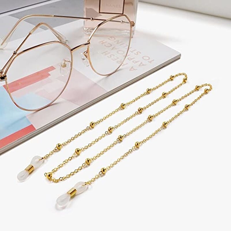 Features:--- Anti-slip Buckles/Adjustable Loops: This gold eyeglass chain both ends have adjustable loops with metal coils. Easy to install and remove. The anti-slip silica gel buckles can prevent the glasses falling down. Will never lose your glasses again.--- Mufti-functional Chain: The classic golden color matches most kinds of glasses. Not only they can be a eyeglass chain, but also a fashionably decorative necklace chain. Remove the silica gel ends, it is a stylish necklace. You can easily pair them with the eyeglass case, purse, coin bag, back bag, etc--- Lightweight/Durable Material: The strap holder is made of alloy metal bead and imitation gold-plating chain. You will not feel the weight. And it is durable with good quality, not easy to break, can be used for a long time.--- Great Gift: The eyeglasses chain decorating your glasses with dainty style, gives the delicate and understated luxury temperament. It is a perfect gift. To make your gifting moment special, the glasses chain will be beautifully wrapped in our high quality gift bag. It will be a great gift for Mother's Day, Valentine's Day, Anniversary, Birthday or for Every girl who you loved.