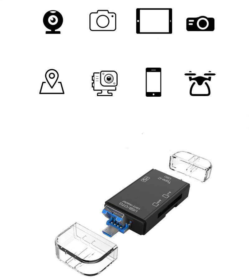 Specification: Material: ABS+environmental protection plastic Size: 7.5CM*2.7CM*1cm Interface: USB 2.0 Support memory card: SD, U disk, TF Interface type: USB+TYPE-C+MICRO Colour: Black quantity: 1