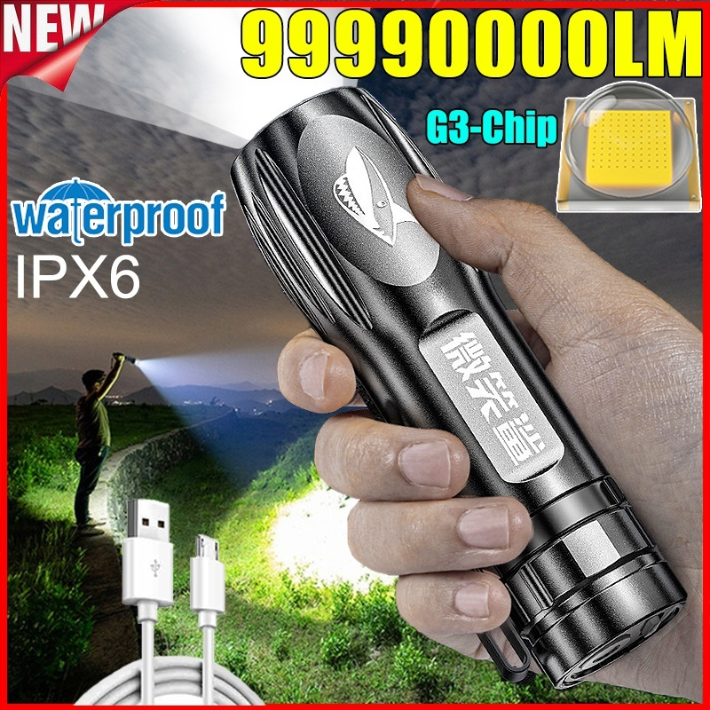 Powerful USB Rechargeable LED Flashlight G3 wick Strong light LED Torch ABS Lightweight Waterproof torchlight for Adventure Camping Riding Hiking