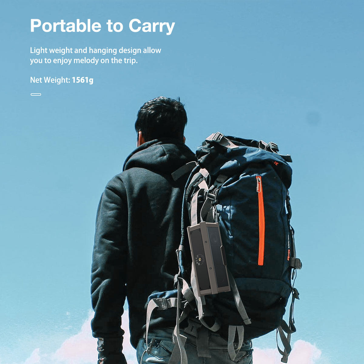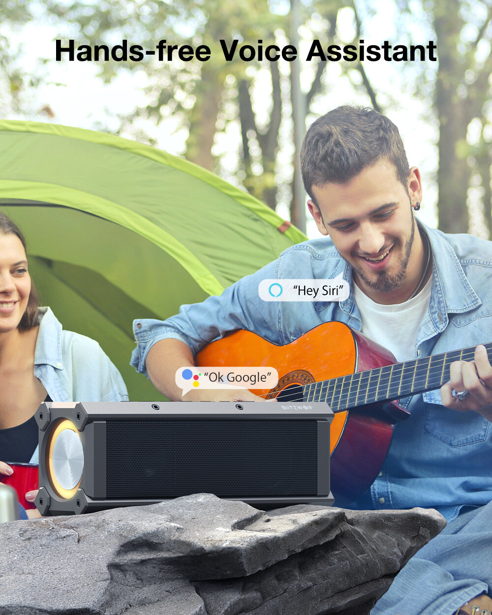 Features:- 100W Powerful Output, Punchy Bass-- Indulge yourself in concert-like feast filled with deeply enhanced bass and sense rich details.- Three EQ Modes-- Switch among three modes(Standard, Light, Heavy Bass) by pressing EQ button for catering to your musical taste.- True Wireless Stereo Sound-- Pair 2 speakers wirelessly for double fun.- 5000mAh Huge Capacity-- Built-in powerbank, give your devices boost.- IPX6 Waterproof-- Save component from water corrosion.- Portable to Carry-- Equipped with detachable shoulder strap, take it anywhere you go.