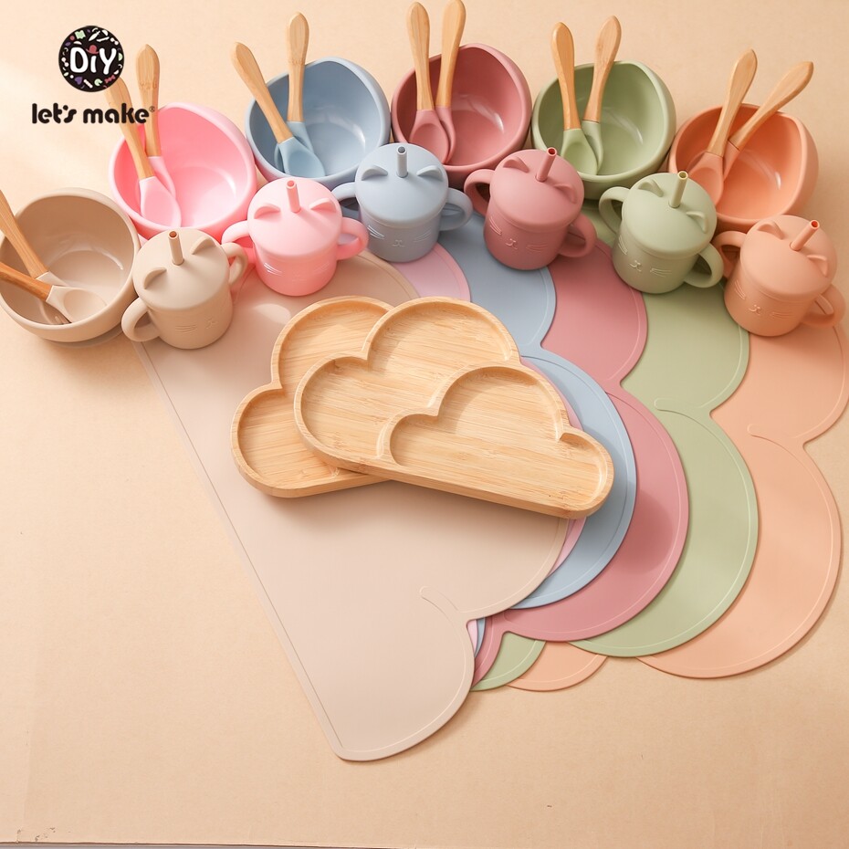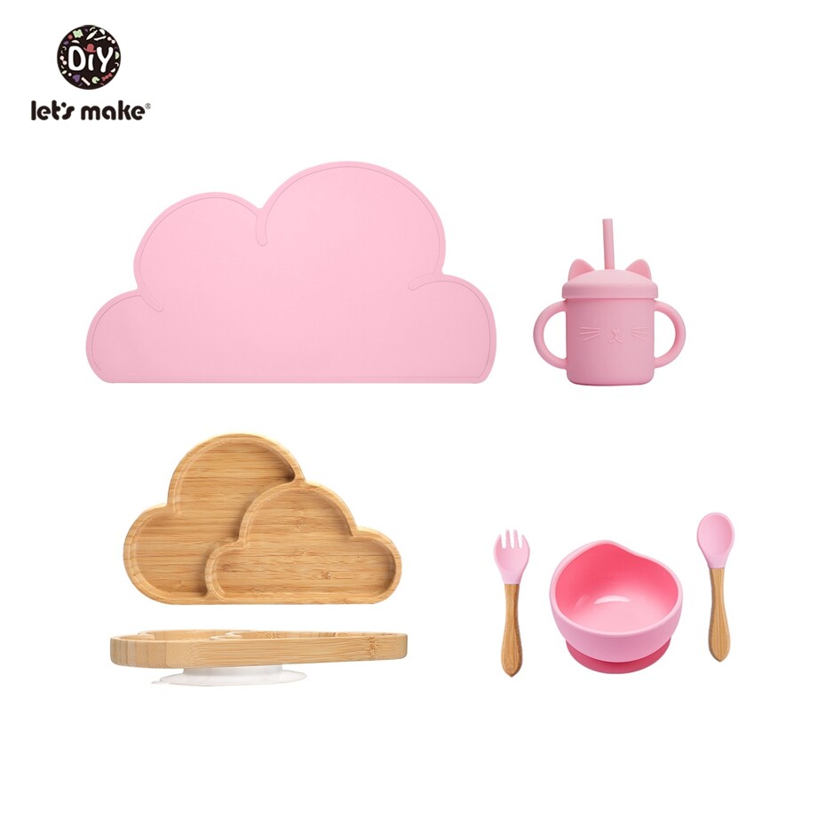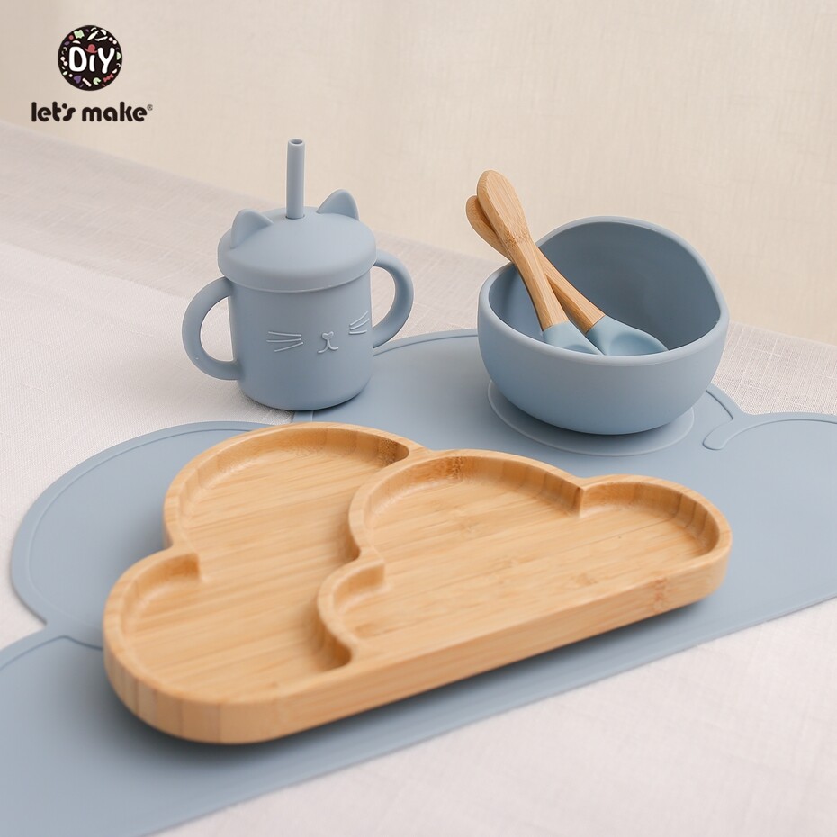 Let's Make Baby Feeding Essentials 6pcs/set Silicone Suction Bowl Bamboo Cloud Plate Toddler First Meal Gift