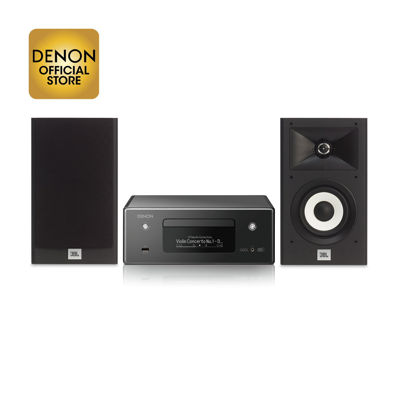 Denon CEOL RCD-N11DAB blk with JBL Stage A120 Bookshelf Loud speakers blk