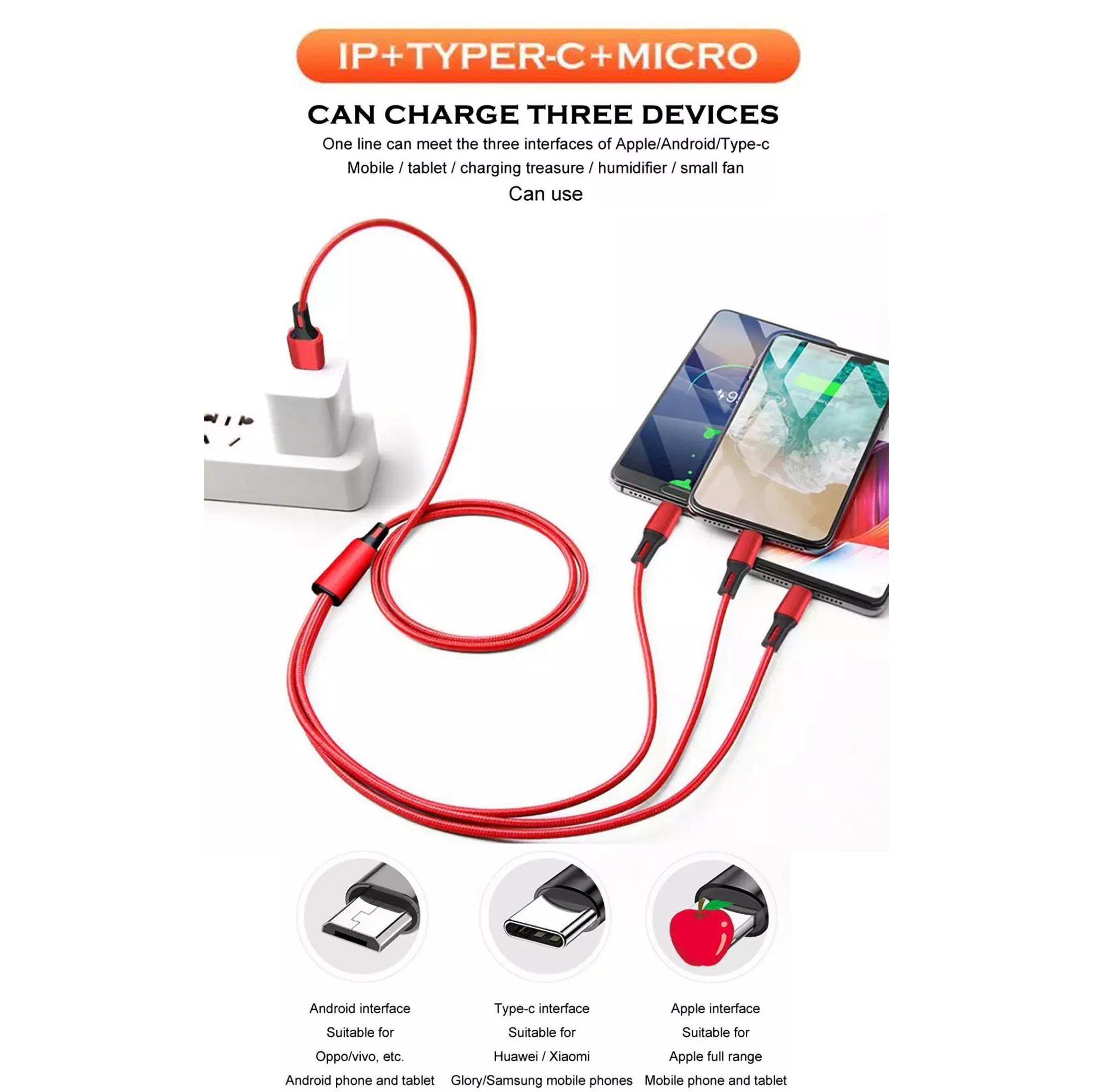 1.2M 3in 1 Type C Mirco USB Cable For Huawei Xiaomi OPPO One Plus Samsung