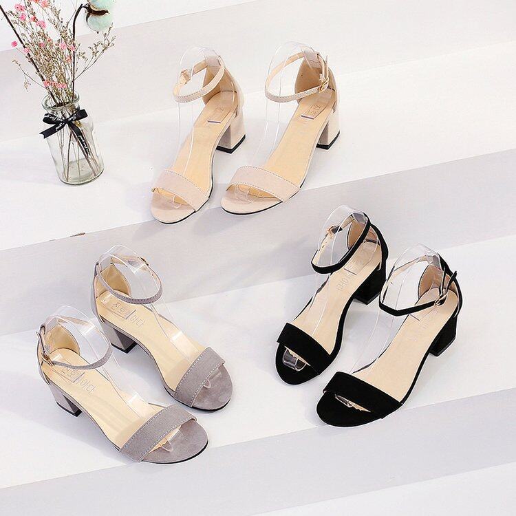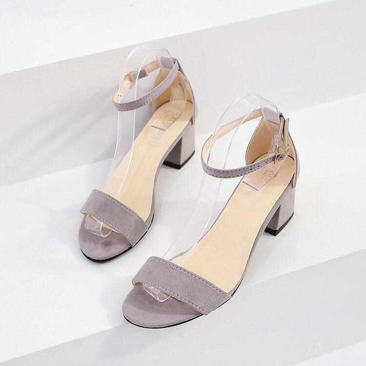 Women's Block Heel Open Toe Suede Buckle Sandals