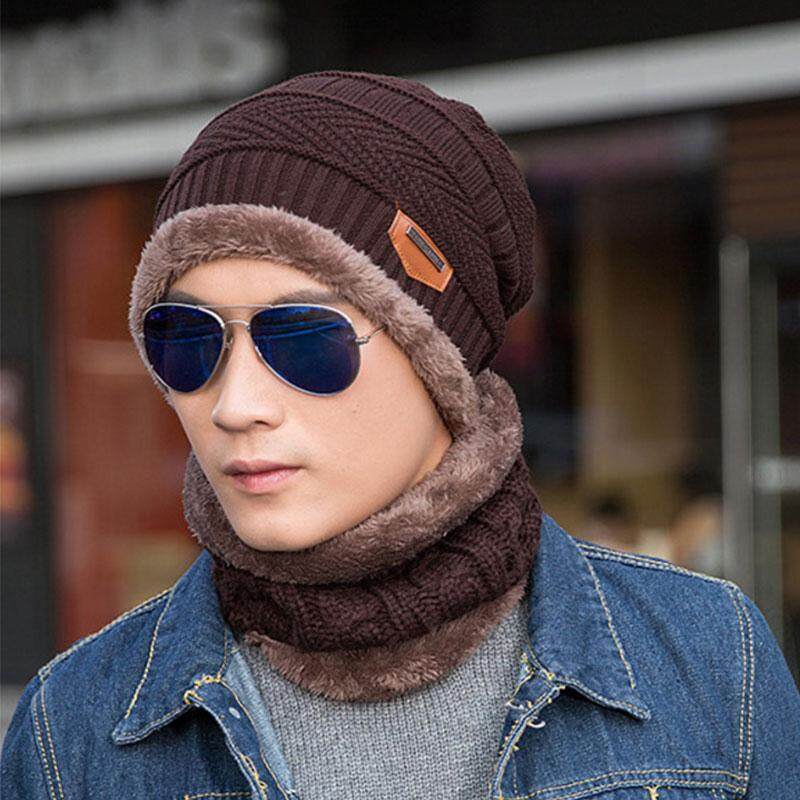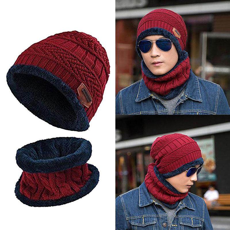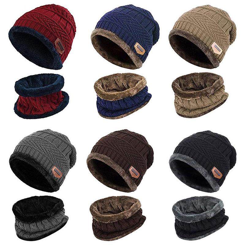 2 Pcs/set Knitted Hat Scarf Caps Neck Warmer Winter Hats For Men Women Skullies Beanies Warm Fleece Cap