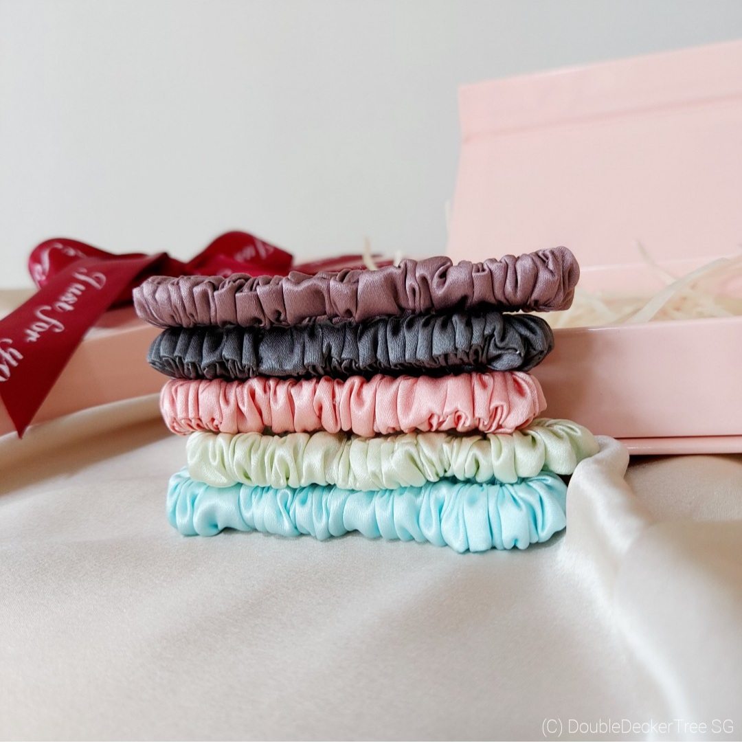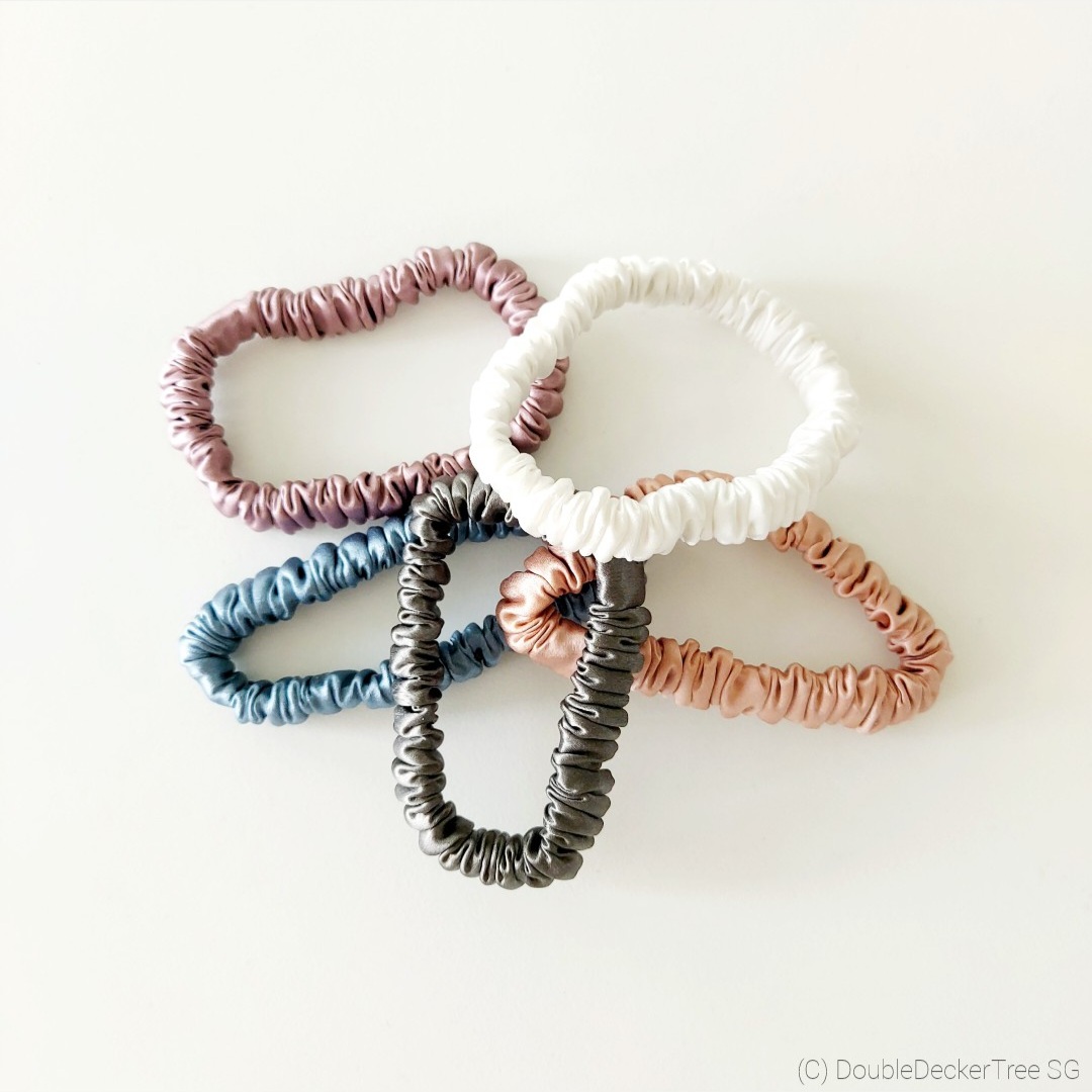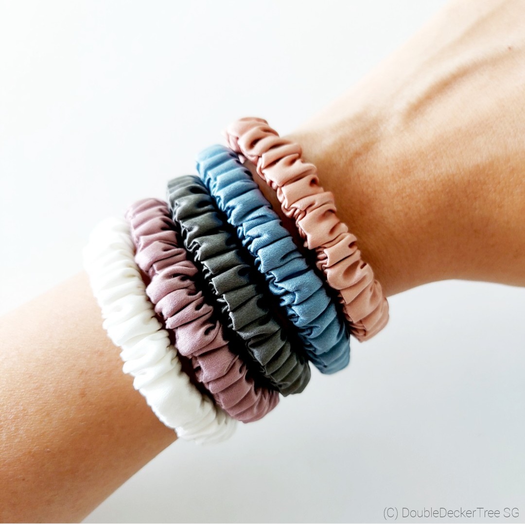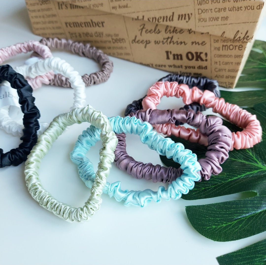 Mulberry Silk Skinny Scrunchies 1cm 100% Natural for Hair Care All Hair Types Soft and Smooth Small Sized Scrunchies Gift Ideas