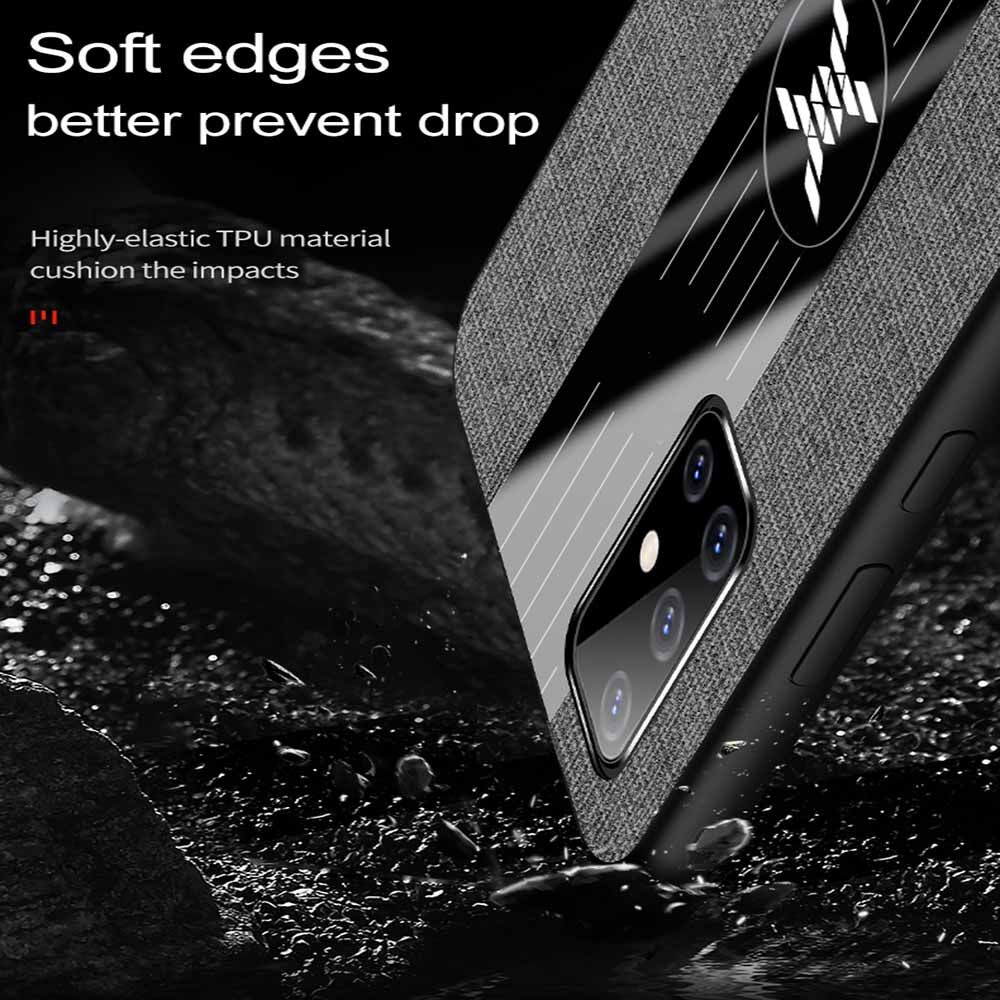 LEEWINDA For Samsung Galaxy A51 4G Phone Case,Three Fights Cloth Pattern Armor Soft Edges Shockproof Back Cover