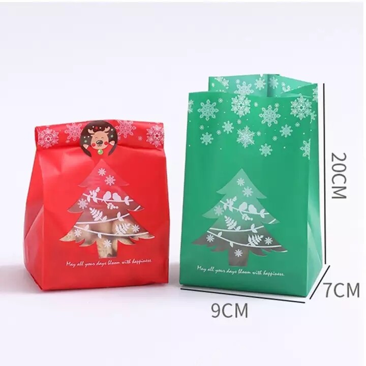 Product:Christmas bag Material: plastic Size:9.5x20x7cm Quantity:25 pieces Color:As picture show Use: Happy new year Christmas tableware decoration Feature: 100% Brand New.