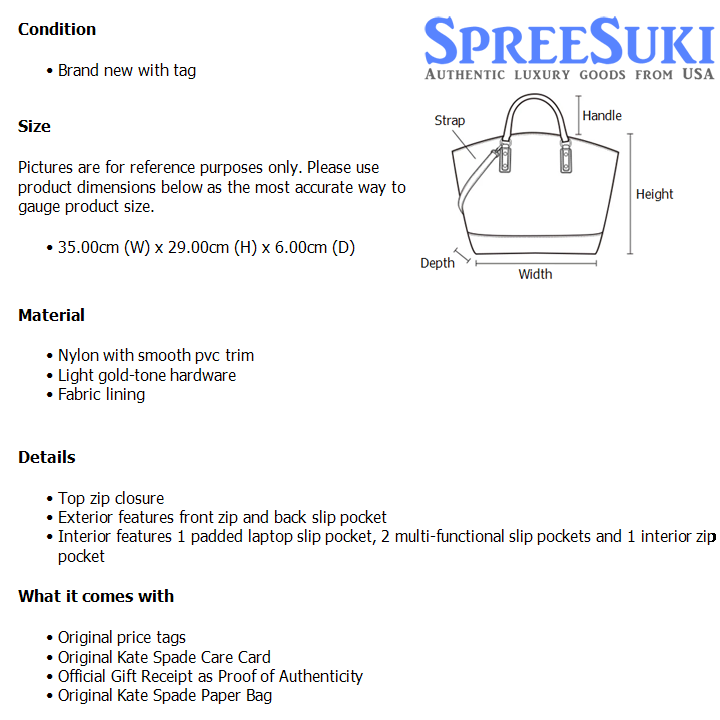 All our products are 100% authentic and purchased from Kate Spade stores in USA. We are a reputable registered business in Singapore and it is illegal to sell counterfeit goods in Singapore. This product also comes with a gift receipt which is printed by the Kate Spade store that we purchased the item from. It states the item that we purchased and the Kate Spade store that it was purchased from, proving the authenticity of the item. Buy with confidence.