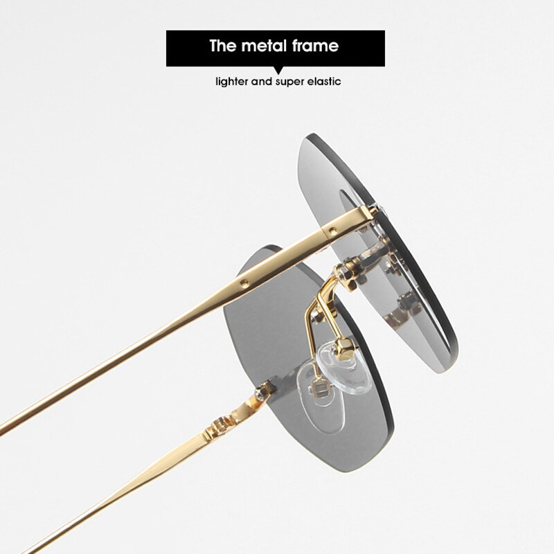 IMPALA QT1648W Korean Style Sunglasses for Men Women Rimless Shades UV400 HD Lens Anti Glare Fashion Sun Glasses Male Female Driving Traveling Eyeglasses