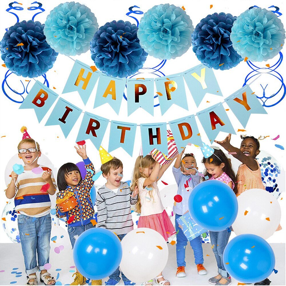 30 Pcs/set Colorful Balloons Happy Birthday Party Supplies Decoration Set Paper Flower Ball Latex Balloon Decoration