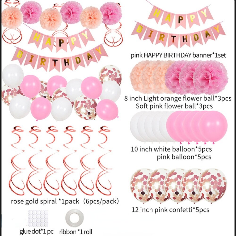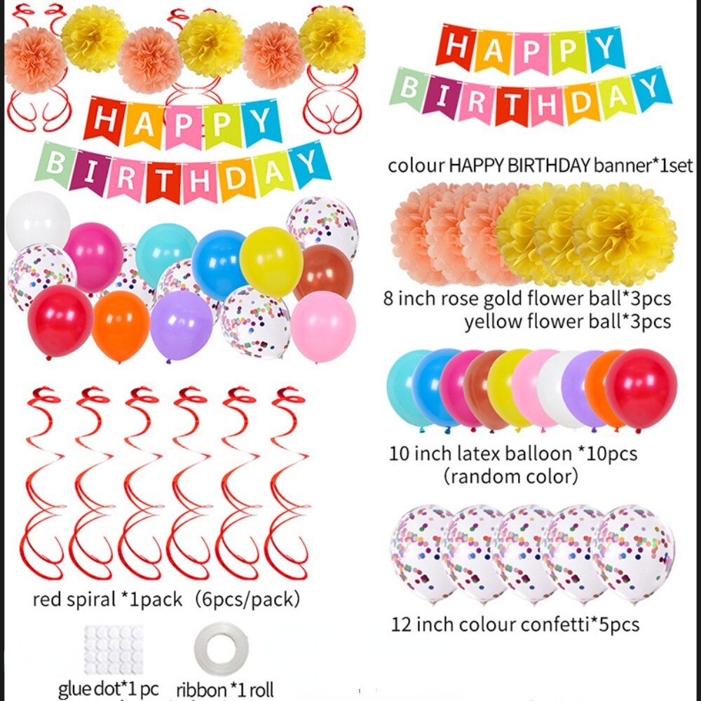 【Safety In Use】The birthday party suppliers made of food grade material, provide a safe environment. All balloons from this set are non-toxic, sturdy and long lasting. Paper pompoms also made of high quality eco-friendly paper. Friendly to pregnant women and children.
