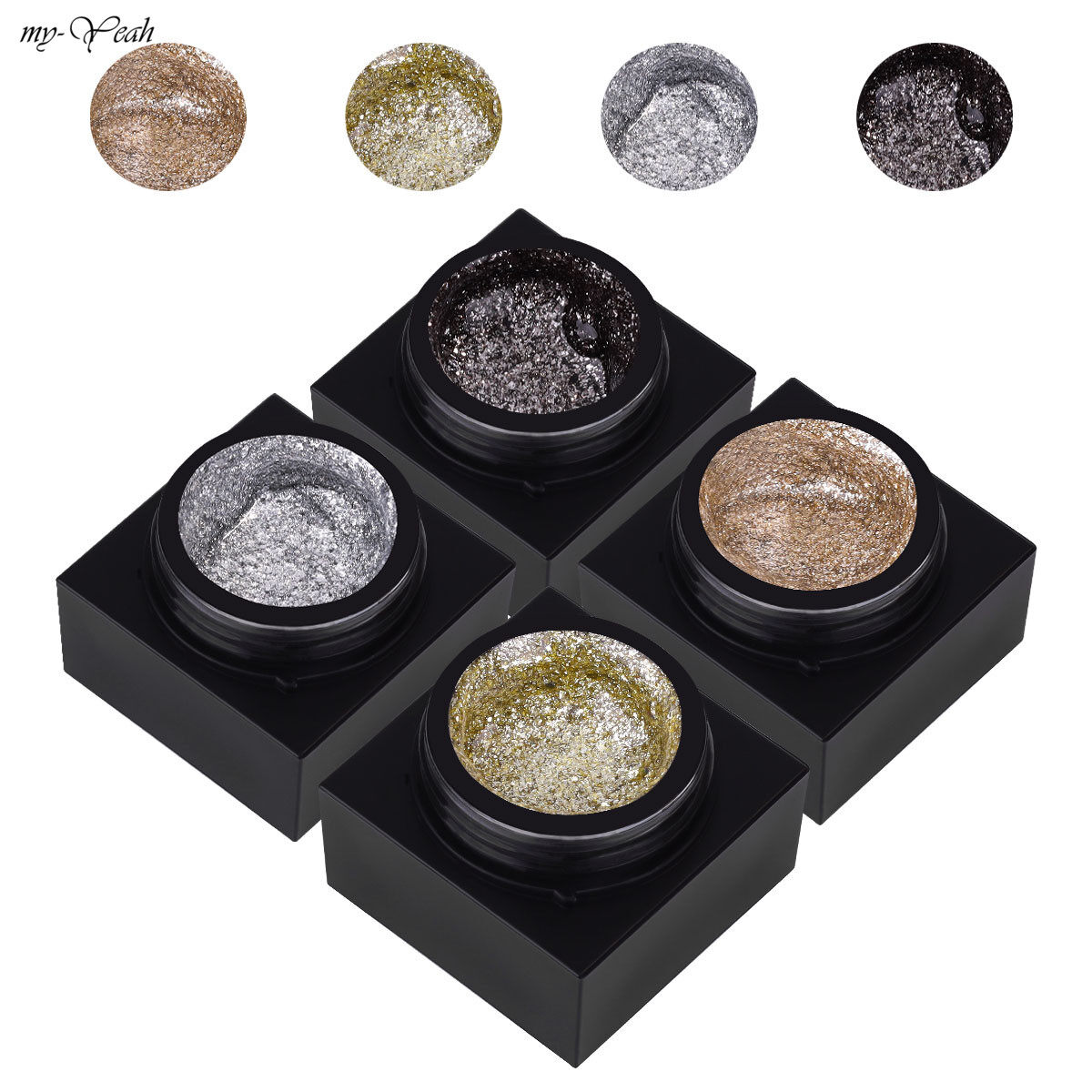 myyeah 4 Colors Glitter Gel Nail Art Reflective Painting Platinum Nail Varnish Soaf Off UV Gel Polish DIY Manicure Tool 5g