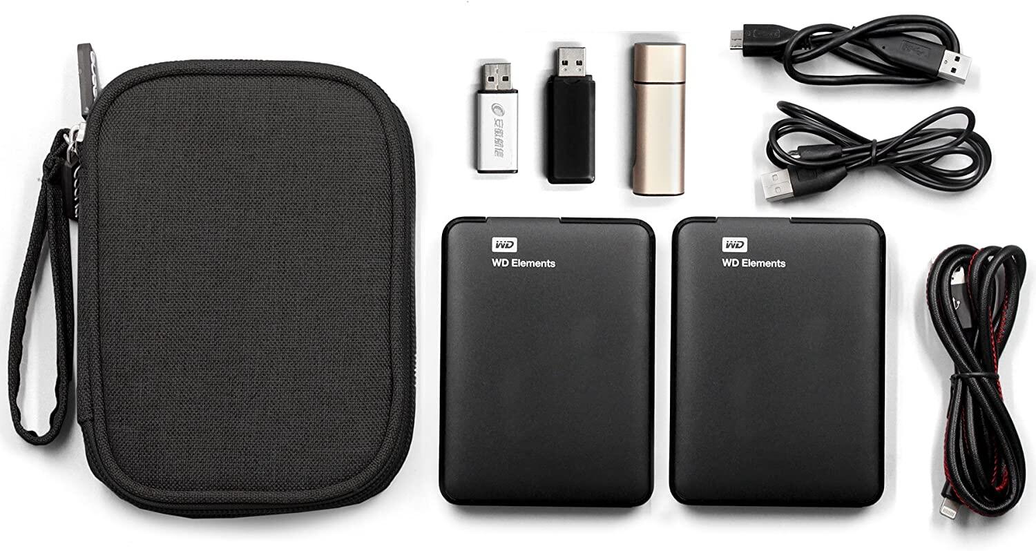 Double Layer Black Shockproof External Hard Drive Carrying Case for 2.5 inch Digital and USB Cable