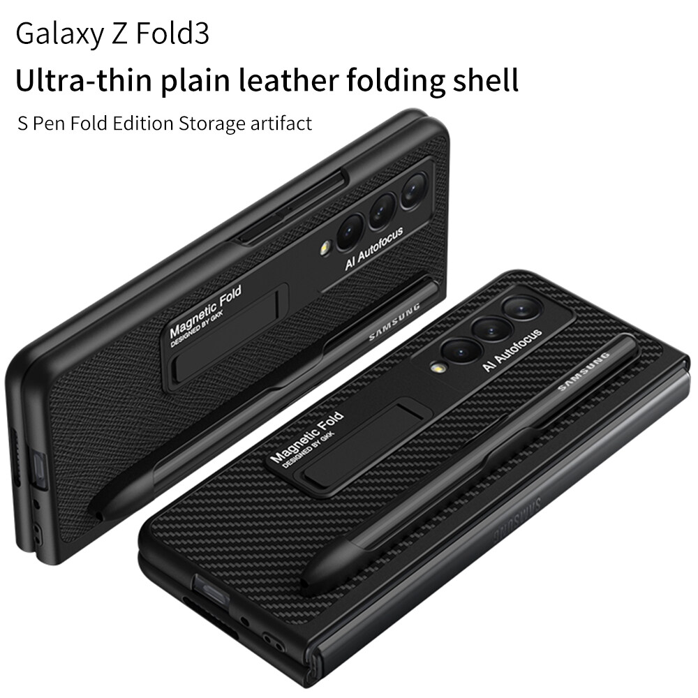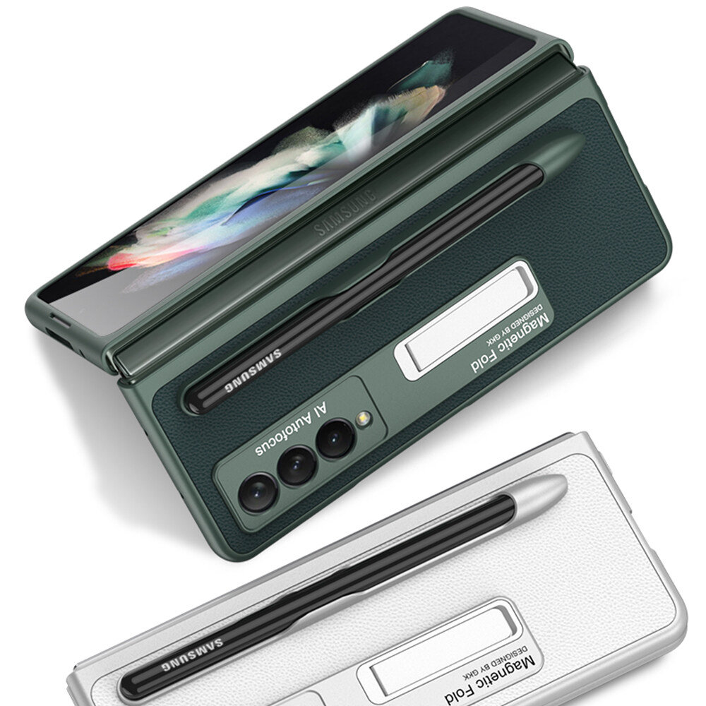 KISSCASE With S Pen Slot Case For Galaxy Z Fold 3 5G Case With Holder Stand Case Ultra-thin Plain PU Leather Holder Case With Pen Slot Case For Samsung Galaxy Z Fold3 5G