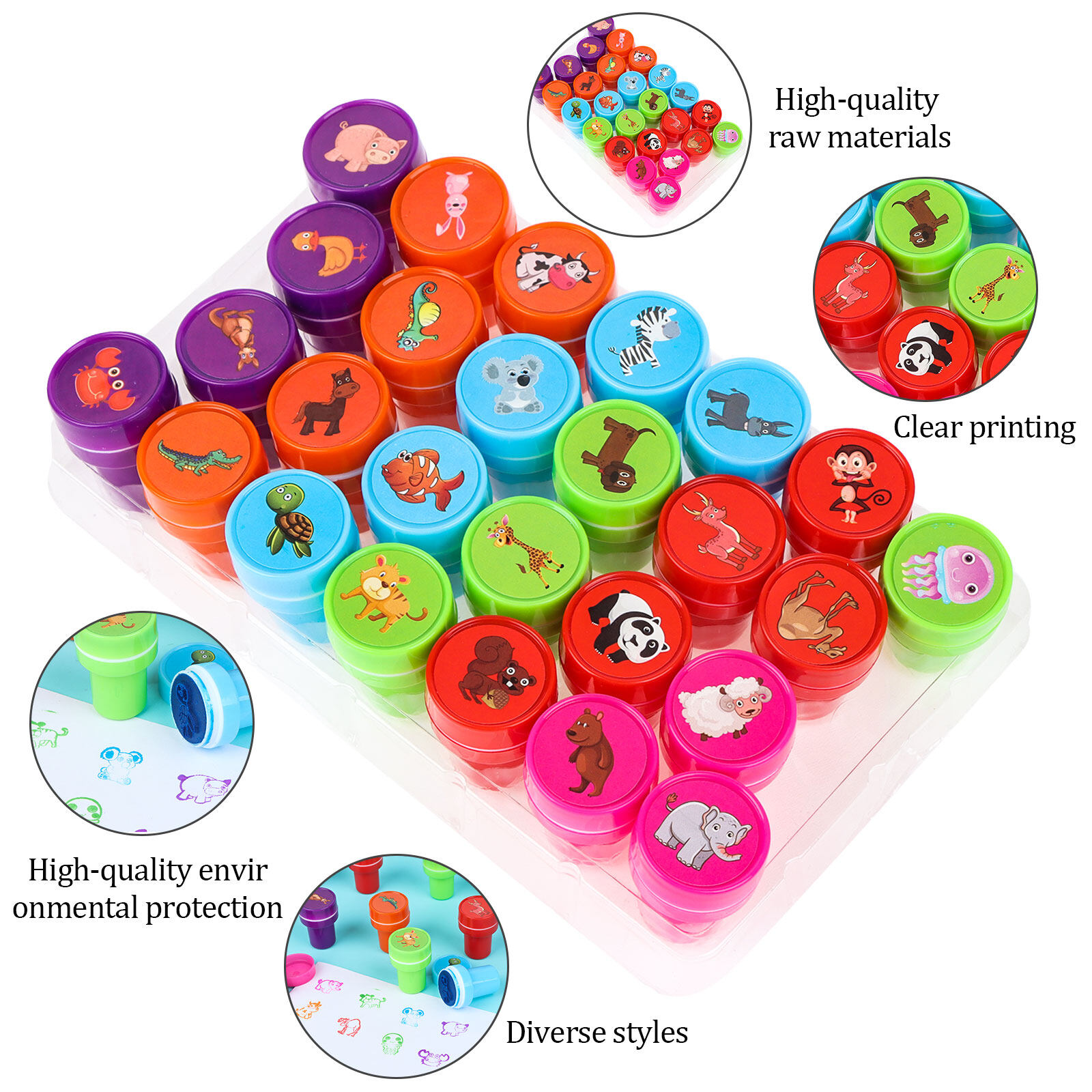Easy To Use : Each stamp has its own ink, no additional ink pad is needed, just move the stamp cover, and then press the stamp on the paper, you can get a clear cartoon animal print pattern, easy for children to use.