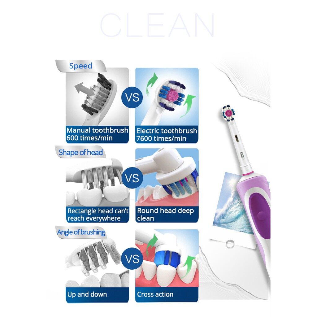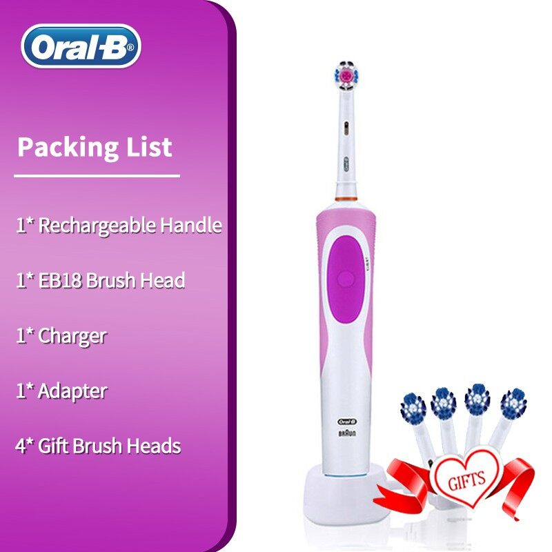 Oral B Electric Toothbrush Rechargeable 100% Waterproof Soft Bristle with 4 Free Heads As Gift