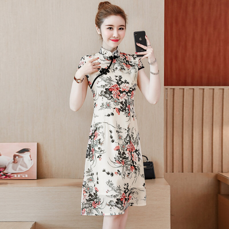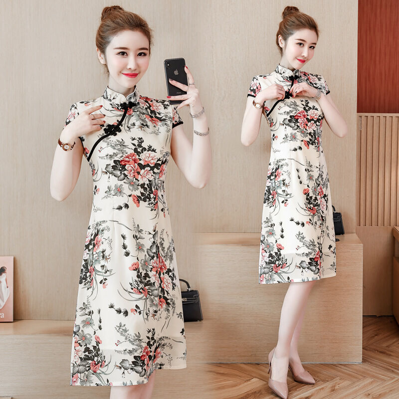 2022 Summer New Large Size Women's Clothing Young Style Mid-Length Slim Slimming Chinese Style Daily Cheongsam Dress
