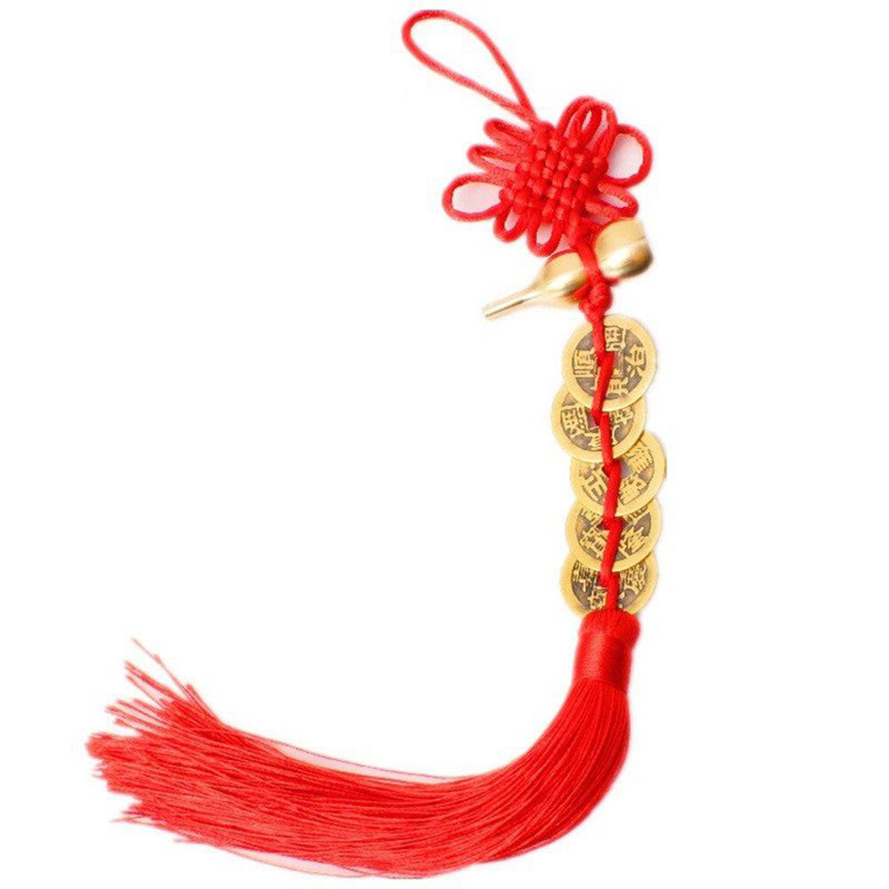 *Five ancient copper coins were knitted b hand with Chinese knots, gourds