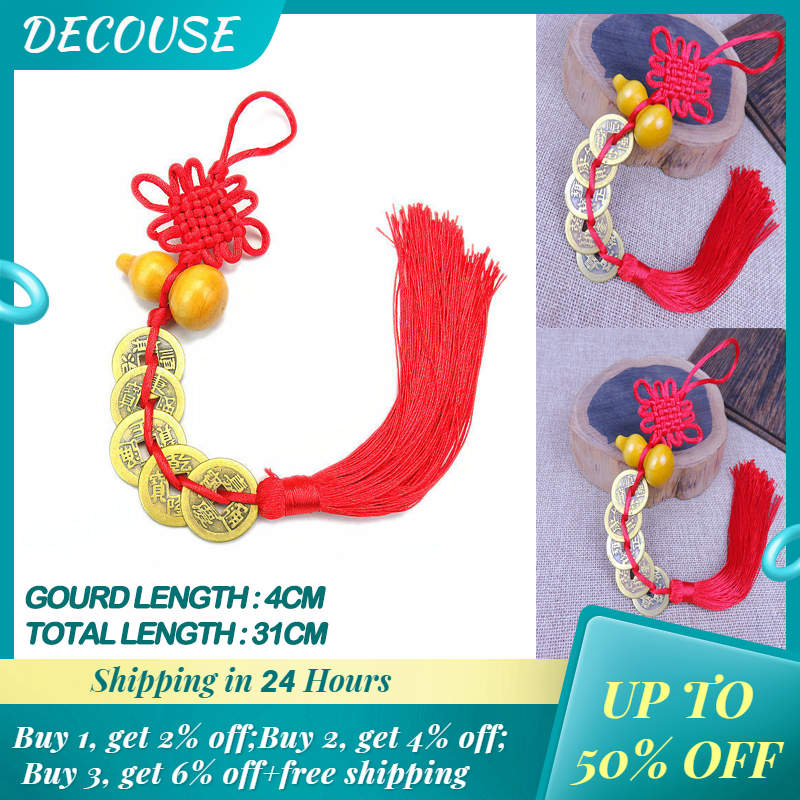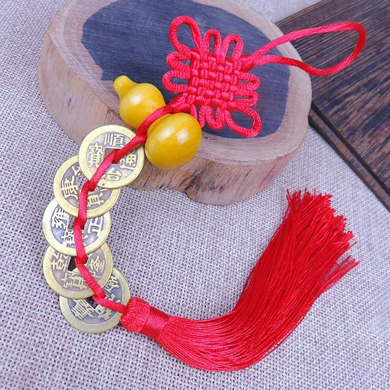 DECOUSE Five Emperors Ancient Coins Copper Coins Peach Wood Gourd Pendant Decoration 五帝铜钱葫芦