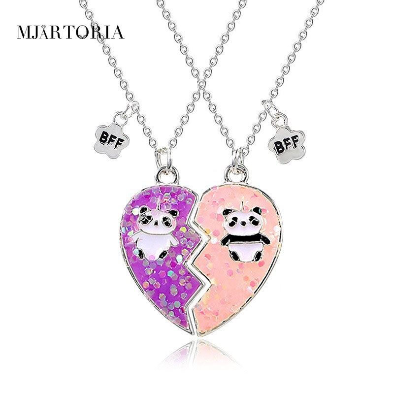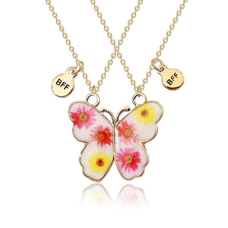 MJartoria Rantai BFF Best Friends Couple Pendant Necklace 2 Pcs Rainbow Broken Heart Butterfly Good Friends Friendship Jewelry Valentine's Day Gift