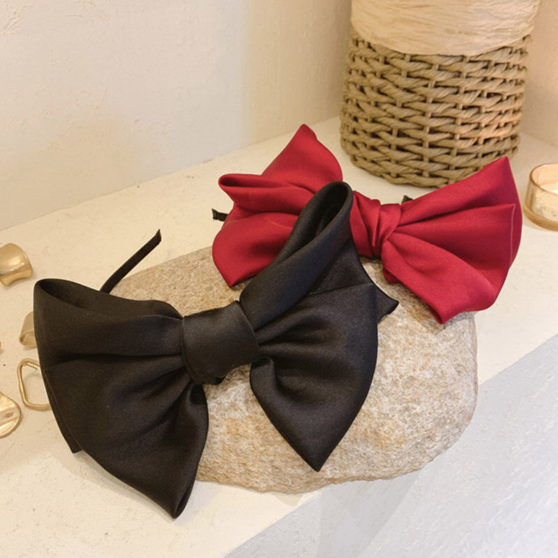 Sweet Big Bowknot Headband for Women Girls Retro Simple Thin Hair Band Black Red Hair Hoops Elegant Ladies Hair Accessories