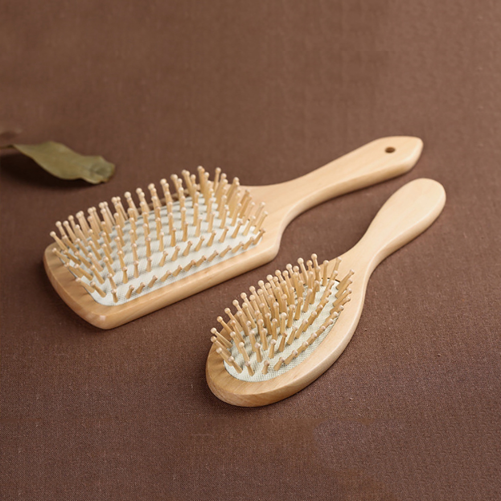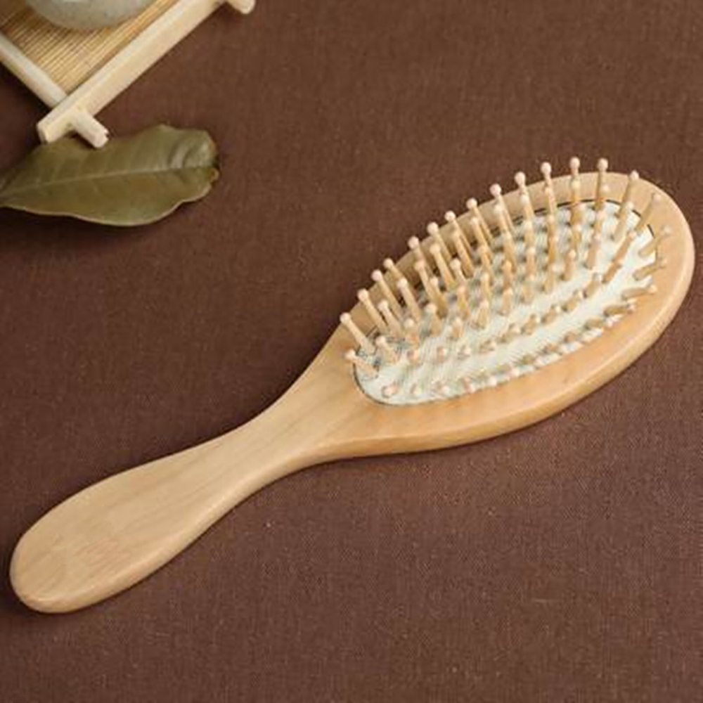 Bamboo Wooden Hair Brush Anti-Static Oval Head Meridian Massage Combs