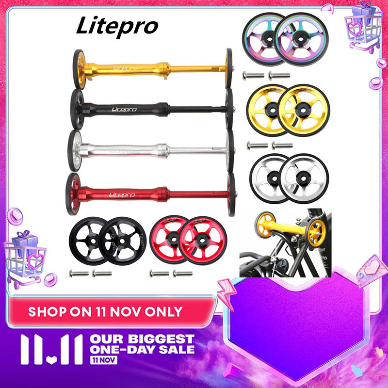 Litepro Telescopic Rod Separate Easy Wheel Folding Bike Modification Aluminum Alloy Easy Wheels With Bolts Lightweight For Bike