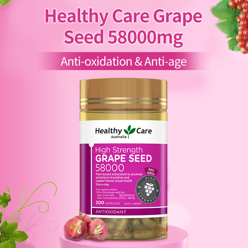 Exp:May-2025 / Healthy Care High Strength GrapeSeed Anti-oxidation & Anti-age 58000 200 Capsules