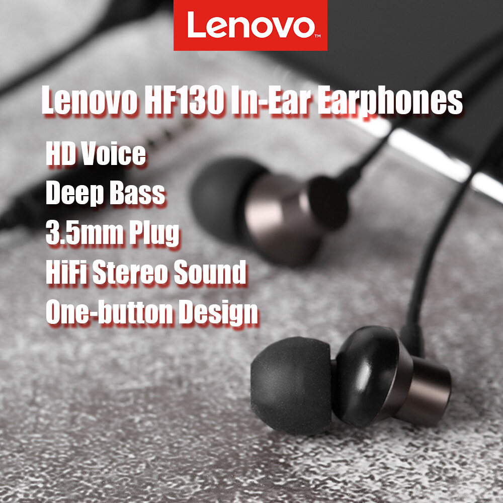 Lenovo HF130 In-Ear Earphones 1.2m Wired Headset with Mic 3.5mm Plug/Noise Reduction/HiFi Stereo Sound/HD Voice/Deep Bass/One-button Design Headphones