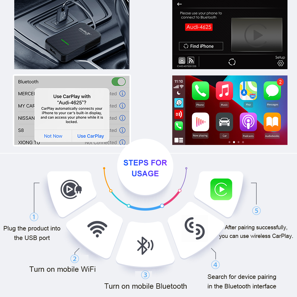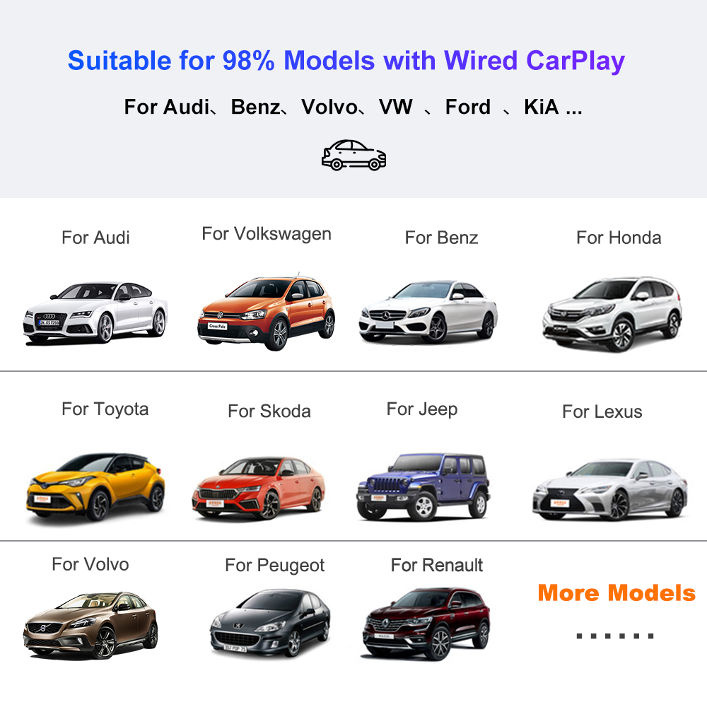 • Plug and Play USB Wireless CarPlay Adapter, without any installation.