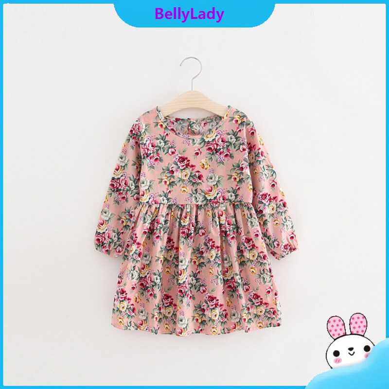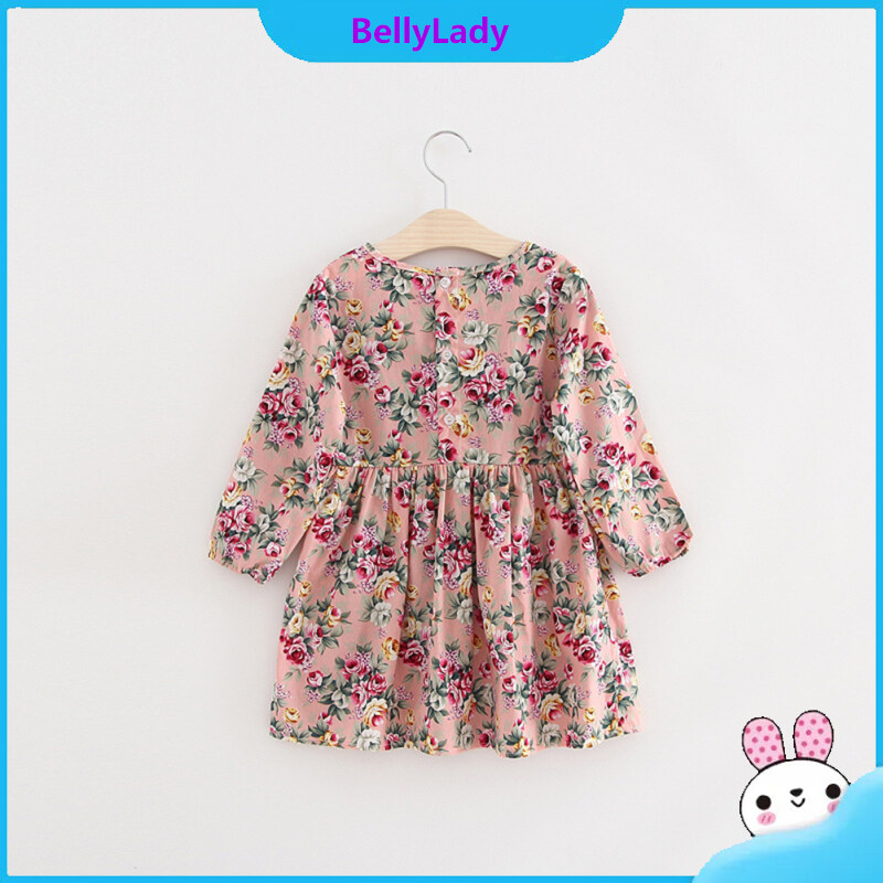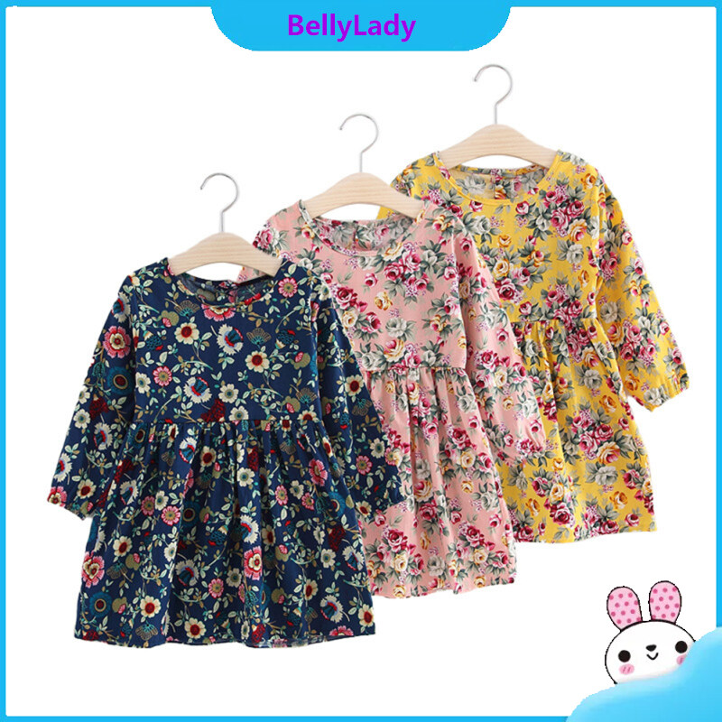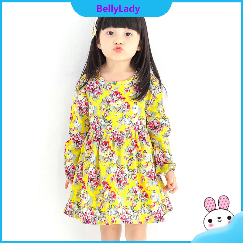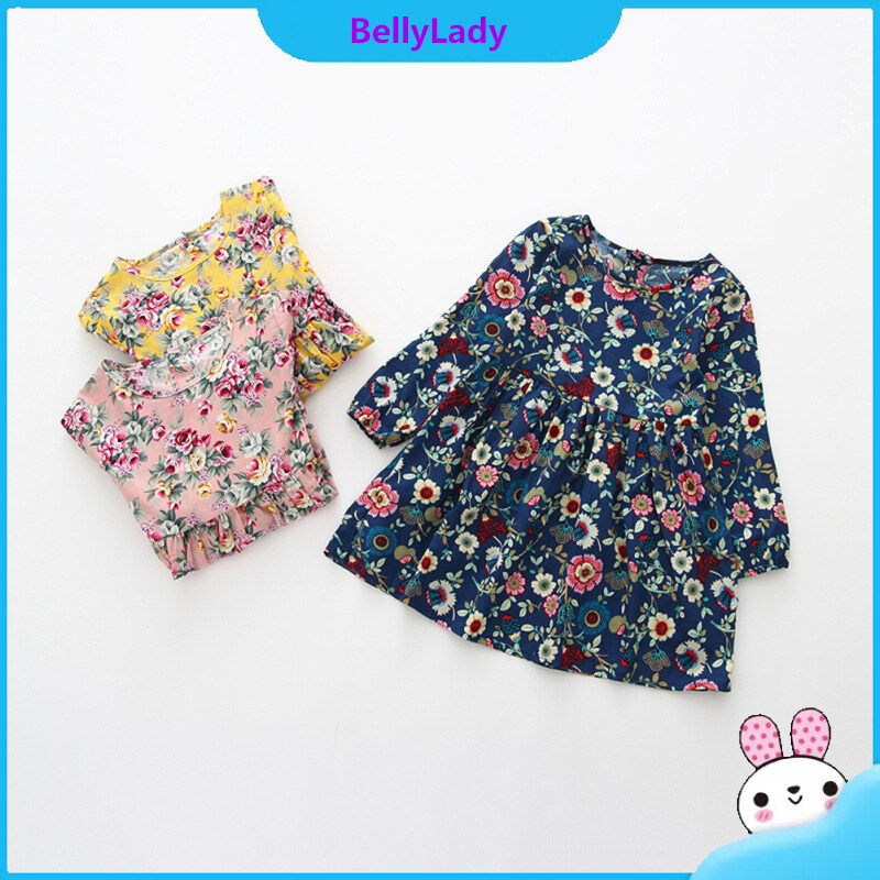 Baby Girls Cotton Long-sleeved Floral Dress Classic Round Neck Breathable Skin-friendly Sunflower Pattern Pleated A-line Skirt