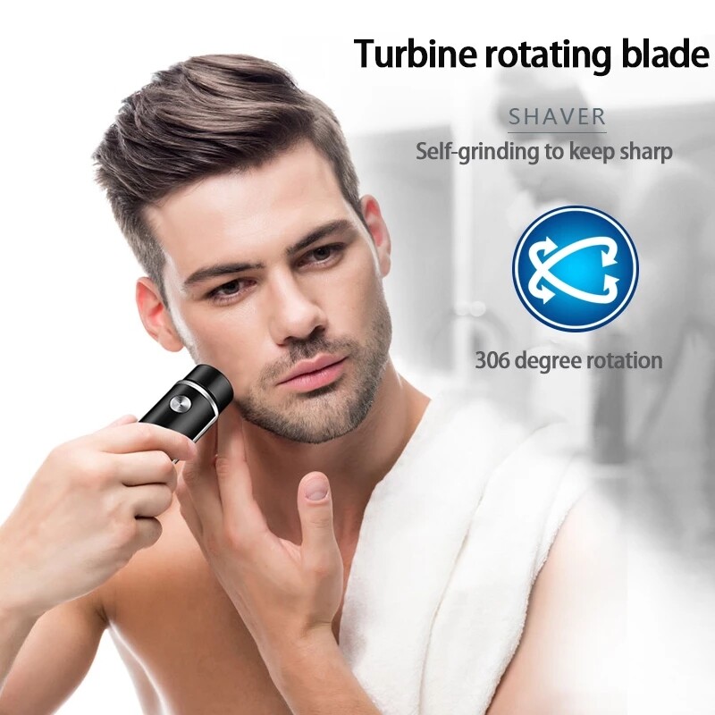KIPRUN Mini USB Rechargeable Electric Shaver Stainless Steel Shaving Machine Men 3D Floating Blade Razor Washable Razor Travel Shaver (Blue)