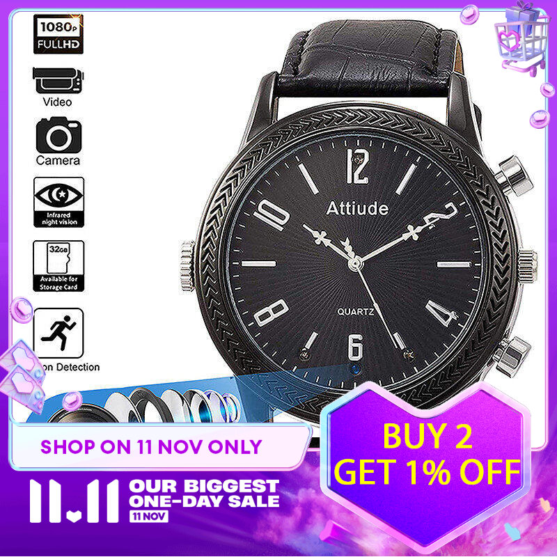 [Built-in 16/32/64G Storage]2-in-1 Full HD 1080P Video Recorder Mini Camera Watch with Cameras IR Night Vision Motion Detection Wireless Micro Camcorder Action Cam