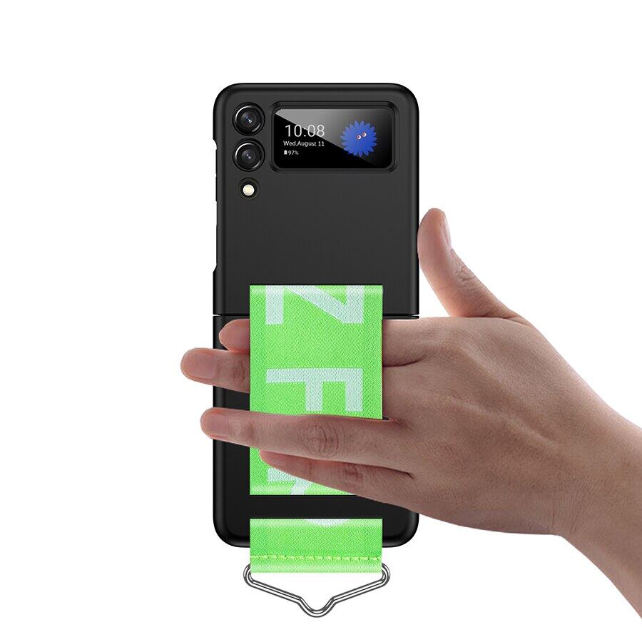 HOCE Cases For Samsung Galaxy Z Flip 3 4 Flip3 Flip4 Case With Hand Strap Wristband Ultra Thin Hard Plastic Camera Protection Cover