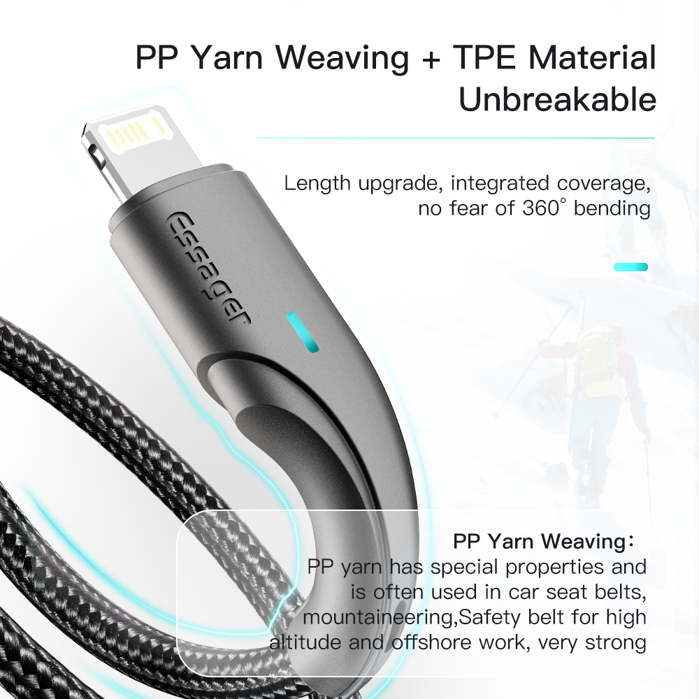 Essager LED 3A USB Type C / Micro/iPhone Cable For Samsung Huawei Xiaomi Fast Charging USB-C Charger Mobile Phone Cable