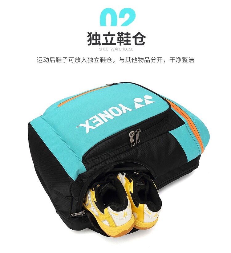 Zacro[Ready Stock] Y-onex 9332 Badminton Bag Double Zips Bag with Shoes Compartment Shoe Bag+ 2 Main Packets 2 Sides Pockets +1 Sling Straps Maximum capacity can hold 6 badminton rackets