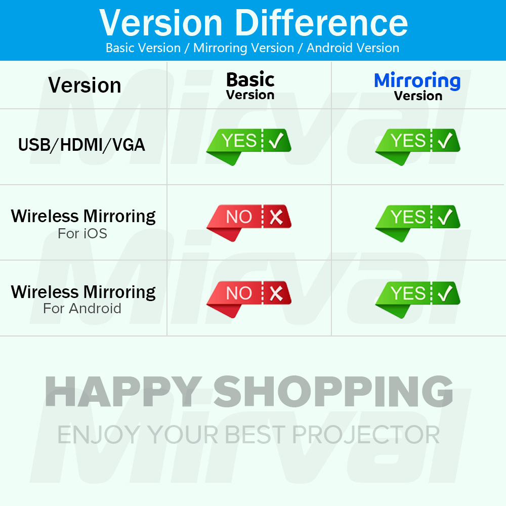 【Full HD 1080P】Mirval P1 Native 1080P Full HD 4K Projector Portable Beamer 8500 Lumens Auto Keystone Home Cinema Classroom Office